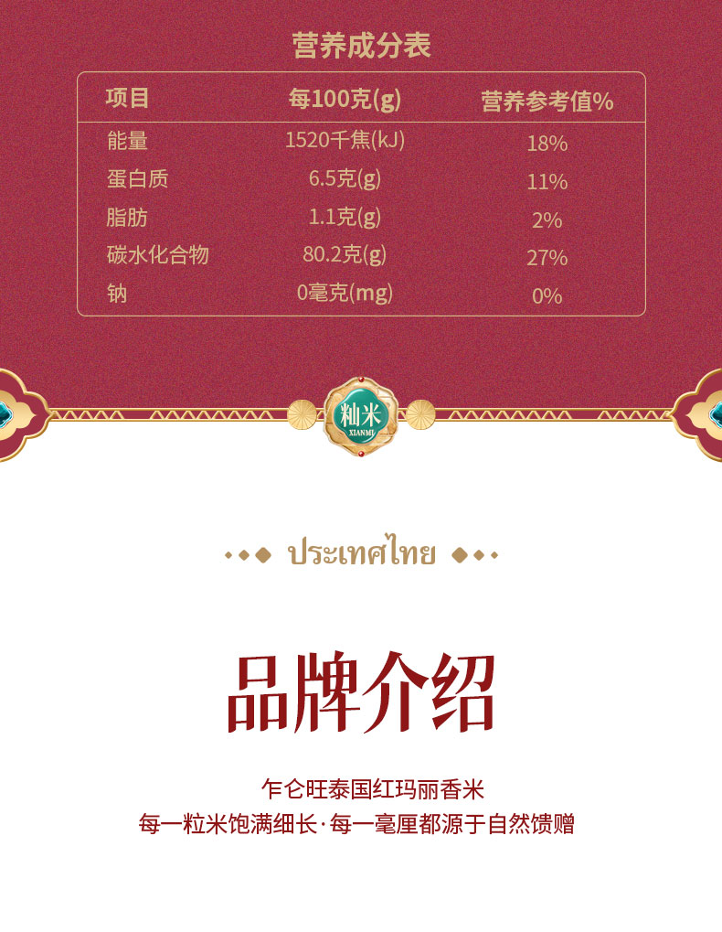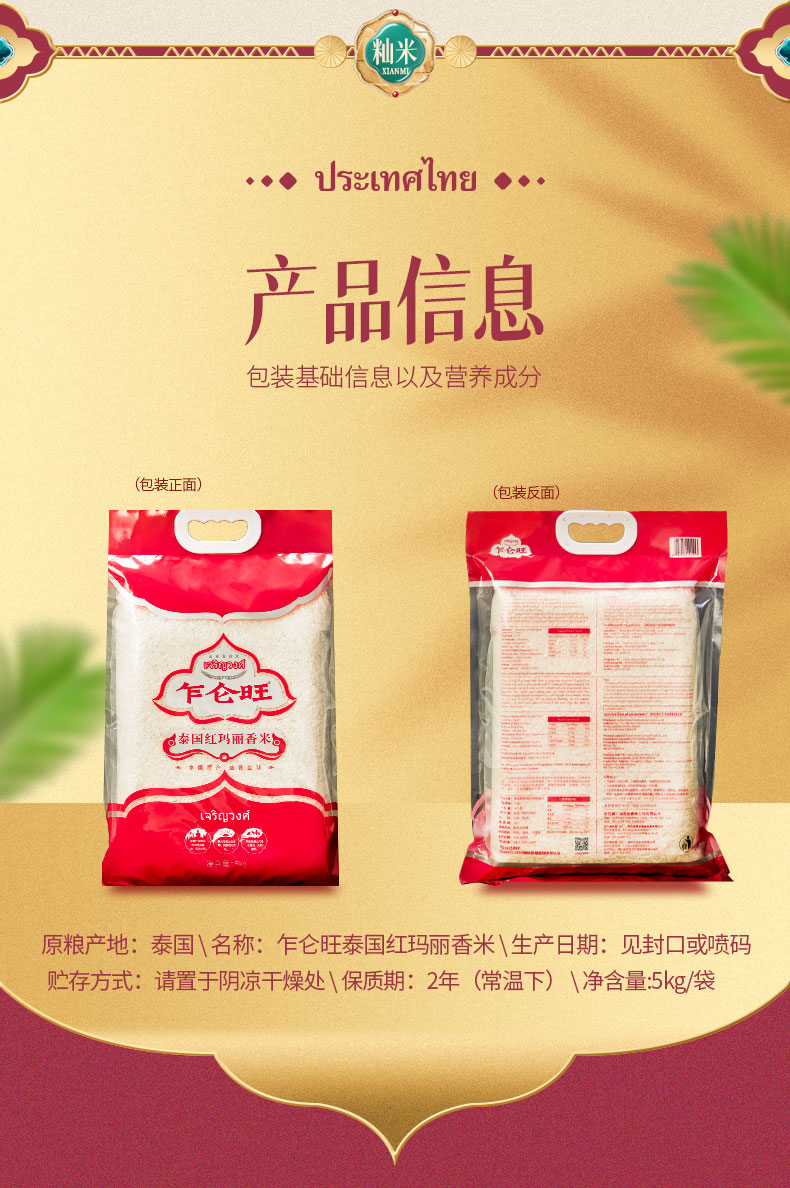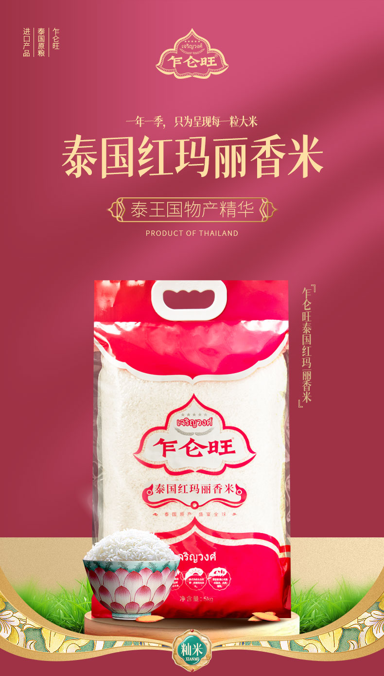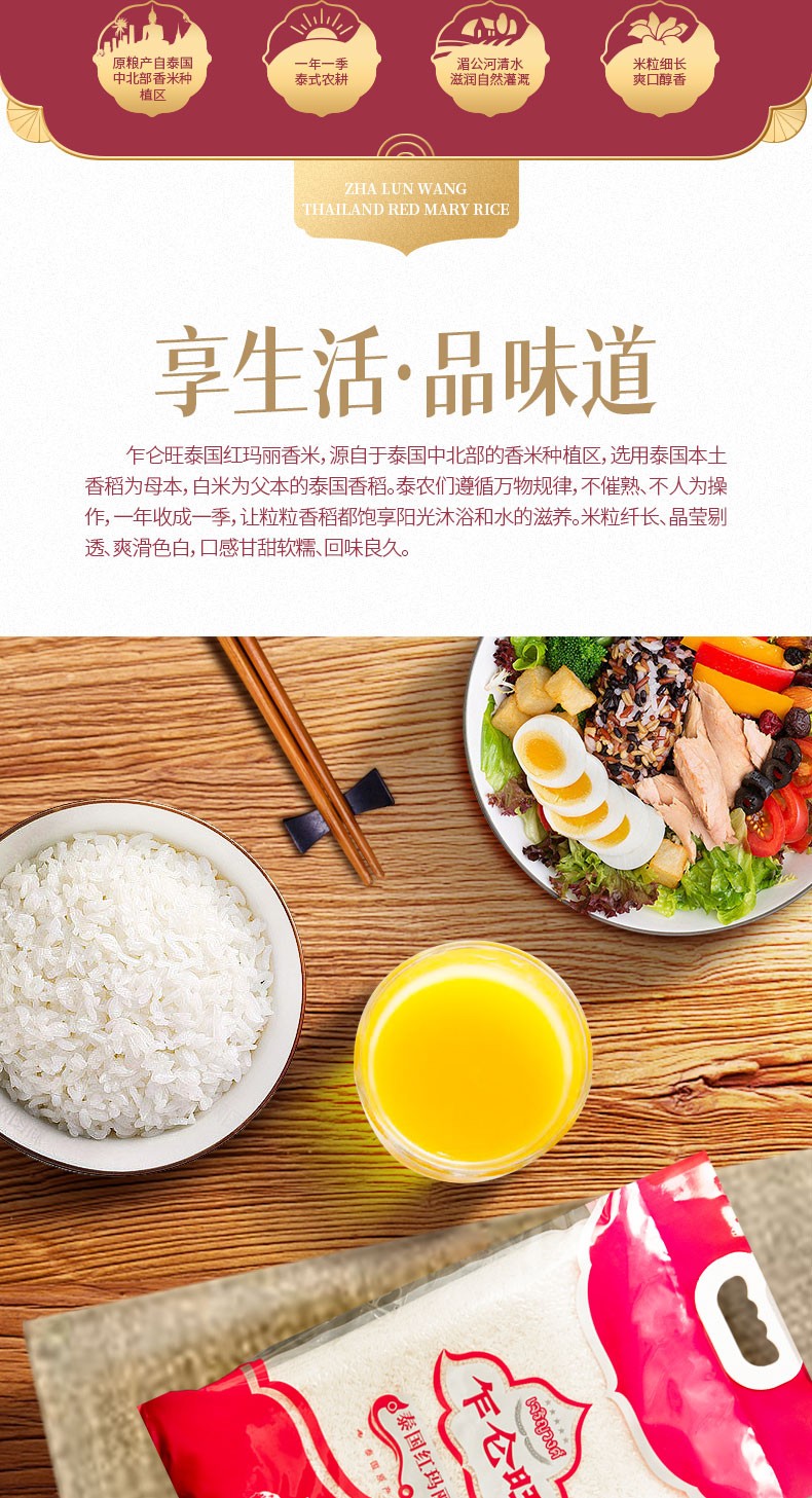 商品名称:(世星阳光)乍仑旺泰国红玛丽香米5KG 一年一季 湄公河清水自然灌溉 米粒细长爽口香醇