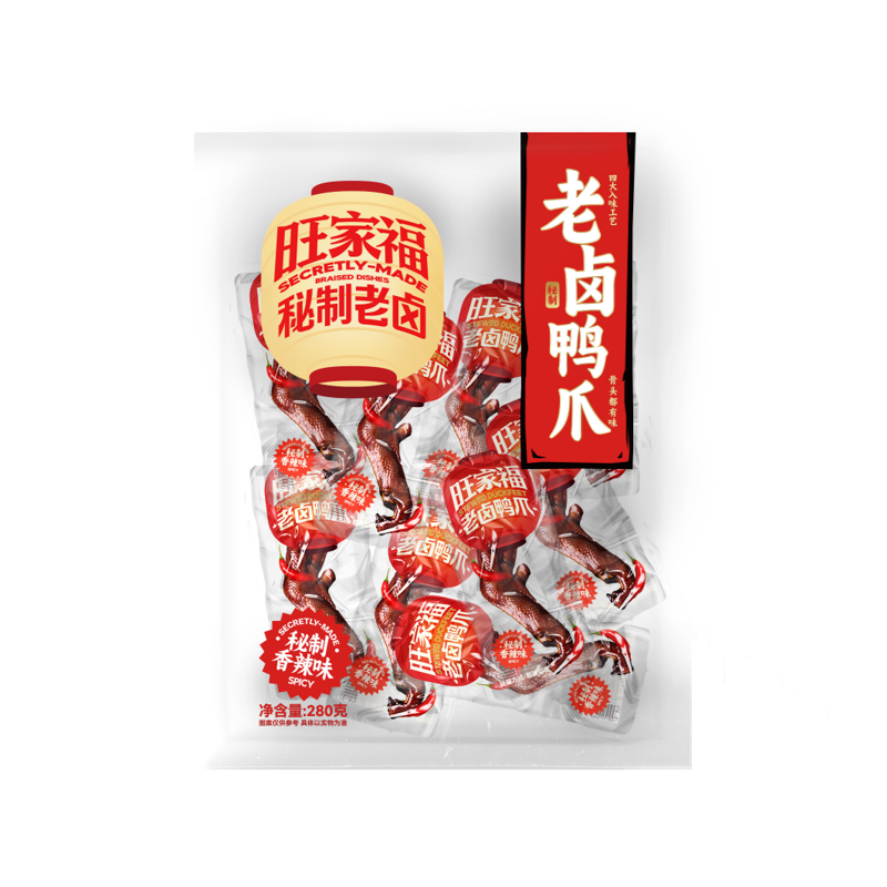 商品名称:(中科惠橙)旺家福老卤鸭爪280g两袋 即食香辣卤香休闲网红解馋追剧零食小吃食品 新老包装随机发货