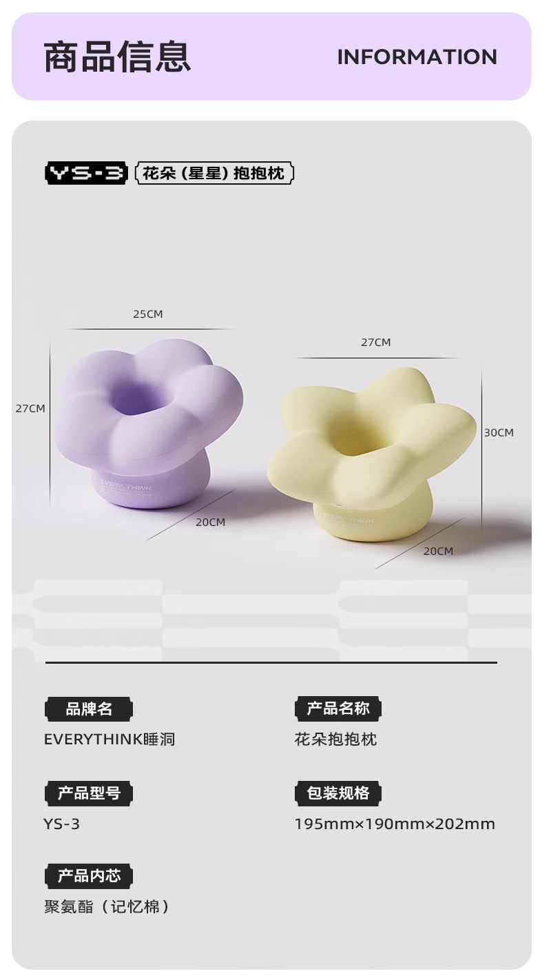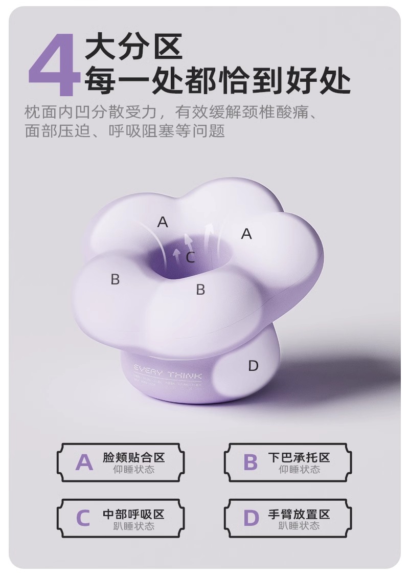 商品名称:(汇景缘)EVERY THINK睡洞趴趴枕 YS3紫色花朵款 午睡枕趴睡枕小学生初高中生学生枕头教室办公室午休趴睡神器