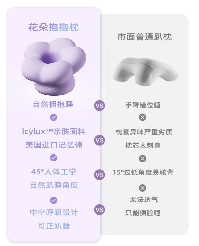(汇景缘)EVERY THINK睡洞趴趴枕 YS3紫色花朵款 午睡枕趴睡枕小学生初高中生学生枕头教室办公室午休趴睡神器