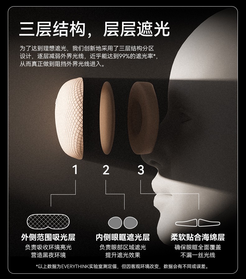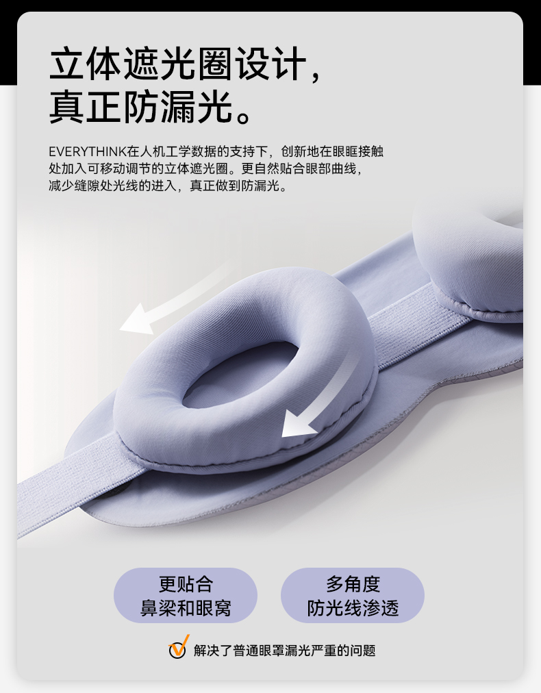 (汇景缘)EVERY THINK睡洞柔光眼罩VE2 3D立体眼罩遮光圈睡眠专用可调节不压眼护眼柔光眼罩