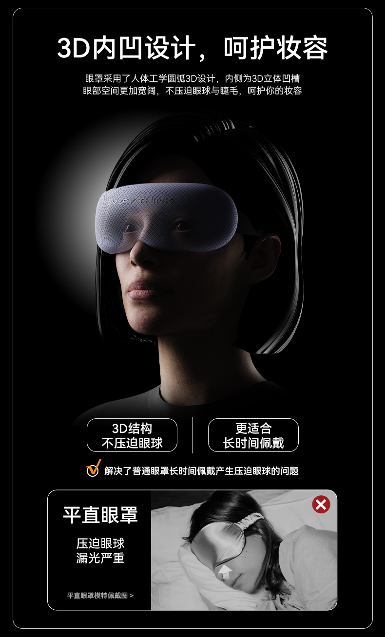 商品名称:(汇景缘)EVERY THINK睡洞柔光眼罩VE2 3D立体眼罩遮光圈睡眠专用可调节不压眼护眼柔光眼罩