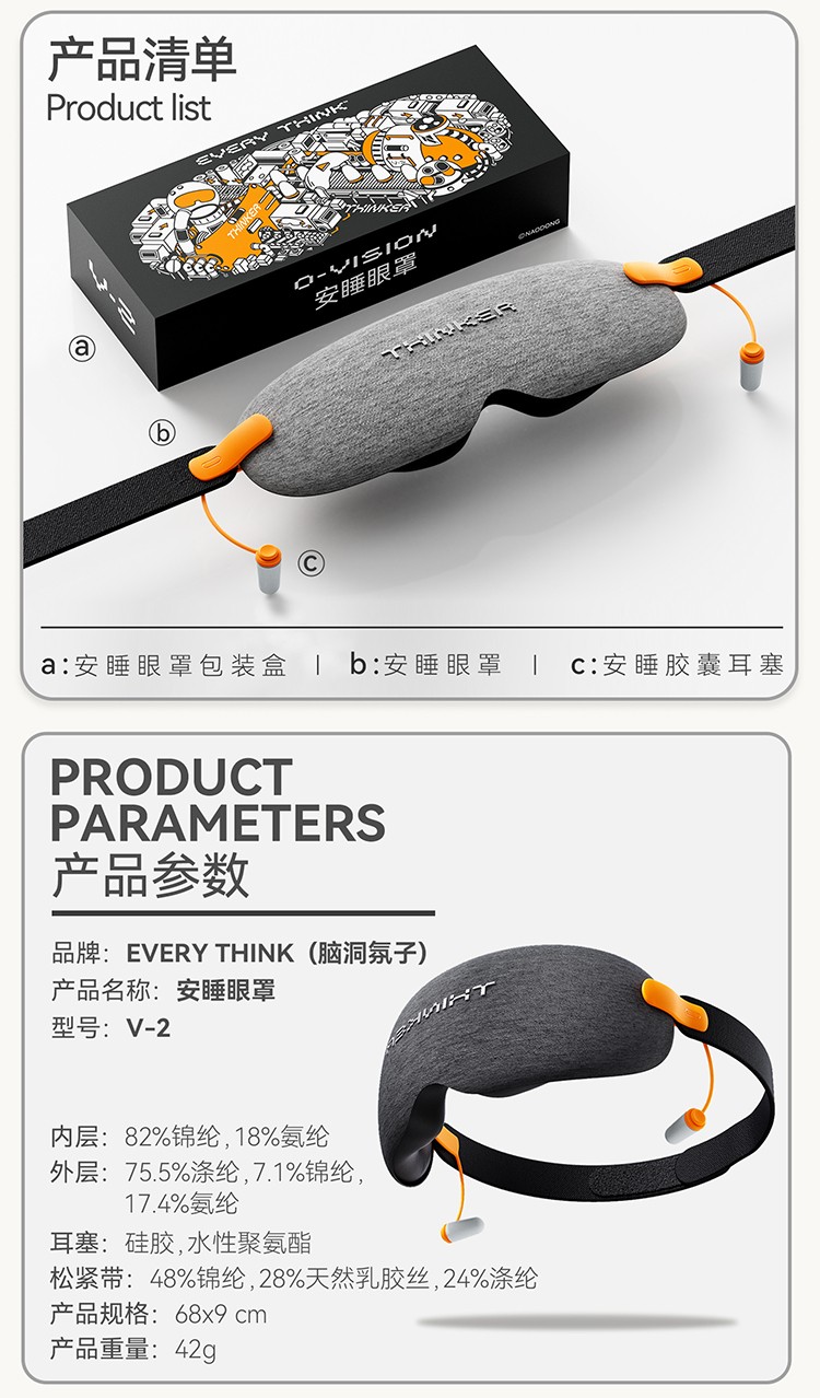 商品名称:(汇景缘)EVERY THINK睡洞降噪眼罩V2睡洞遮光眼罩安睡降噪睡眠睡觉专用耳塞一体静音3D立体护眼