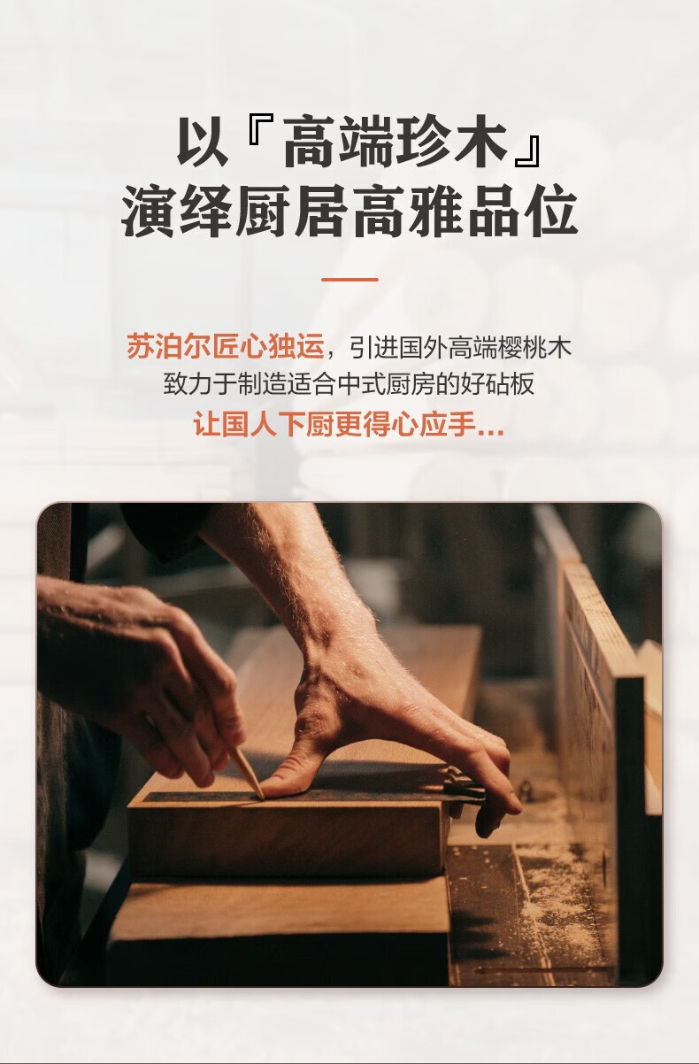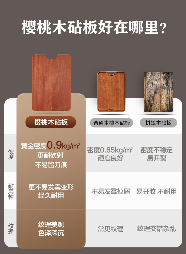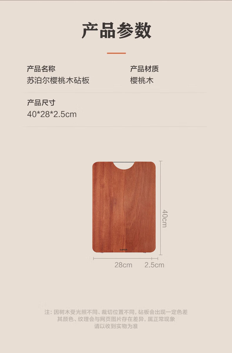 商品名称:(巨邦佑)BJ+苏泊尔 樱桃木砧板 40*28*2.5cm实木防霉面板家用加厚切菜板