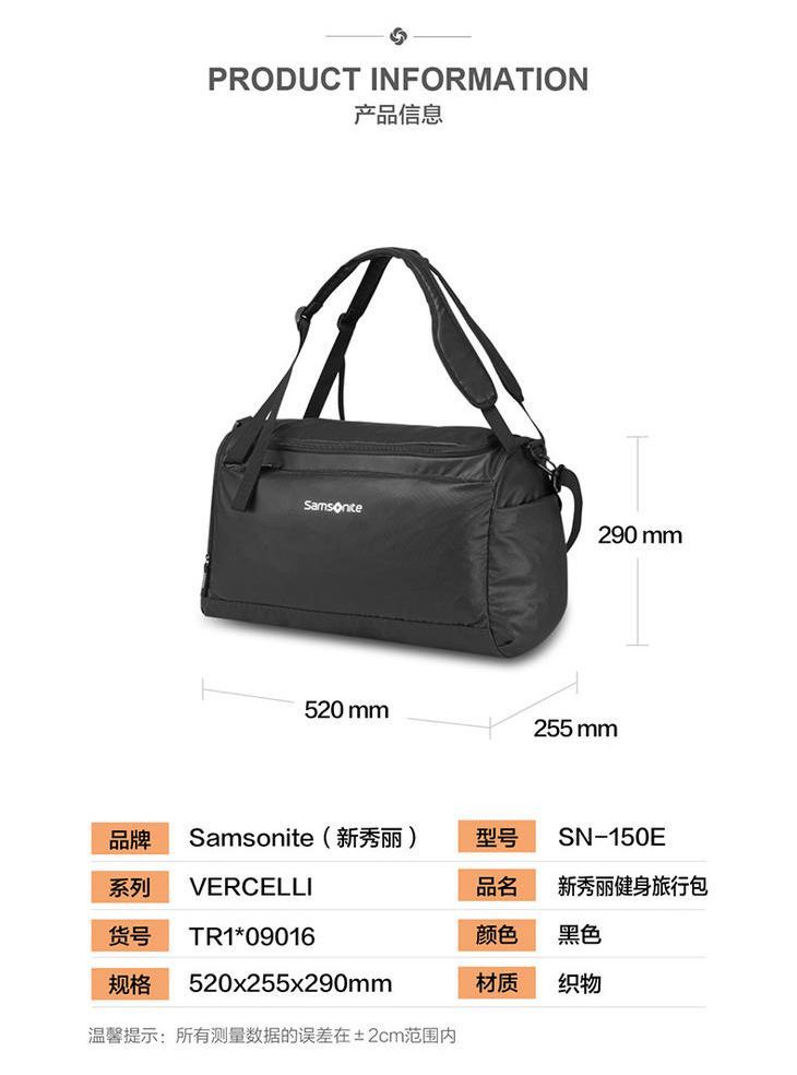 商品名称:(巨邦佑)T+新秀丽行李袋超轻旅行包运动健身包单肩手提包TR1*09016