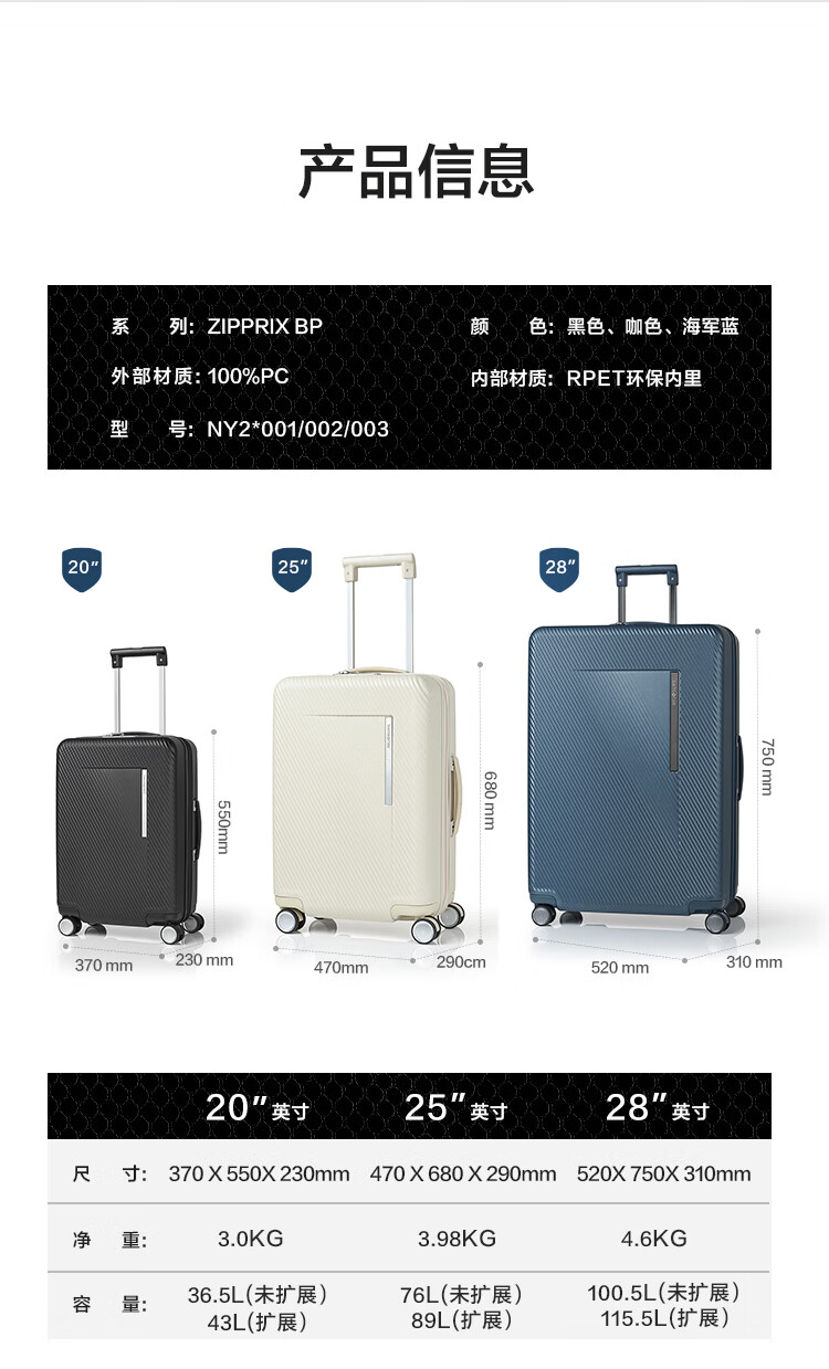 商品名称:(巨邦佑)T+新秀丽2025新款行李箱可扩展大容量拉杆箱20寸登机25寸旅行箱 NY2*41002