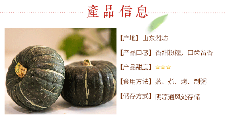 商品名称:(世星阳光)民间造物 贝贝南瓜 内蒙古、山东 地方特产 4.5斤礼盒装