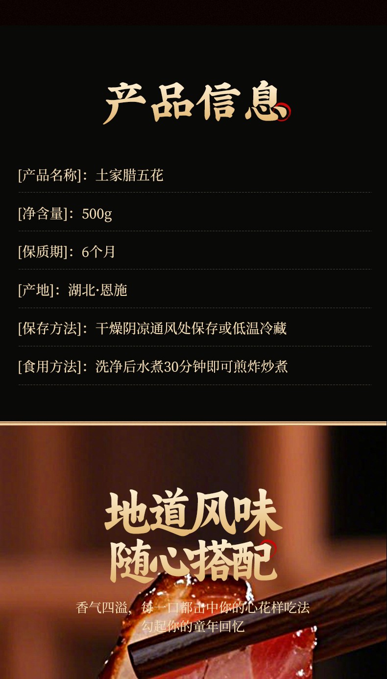 商品名称:(世星阳光)九月穰土家腊五花500g恩施烟熏五花腊肉 湖北恩施特产腊味农家土猪腊肉