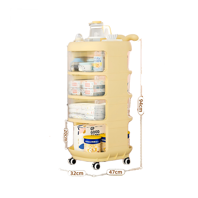 商品名称:(汇景缘)也雅鲸鱼推车收纳柜(4层)G-39013樱草黄+透明 置物架小推车辅食零食收纳移动新生儿专用护理手推车