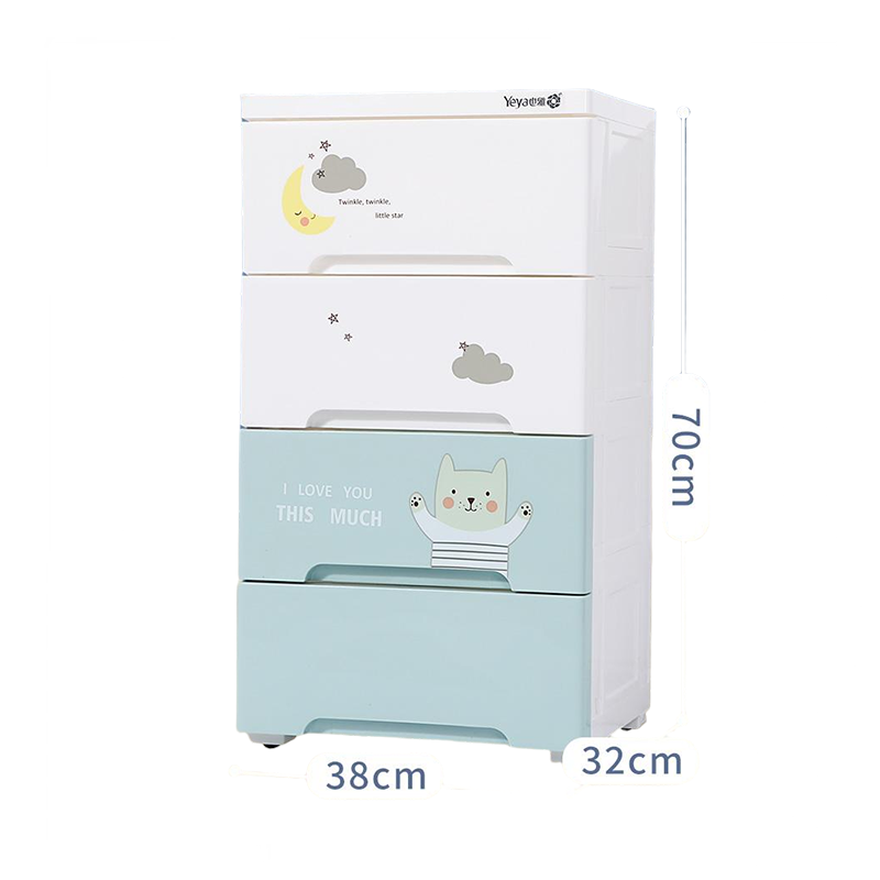 (汇景缘)也雅 抽屉式收纳柜(童心未泯 苏贝青 封闭式)4层G-388624 玩具收纳柜储物角落收纳柜