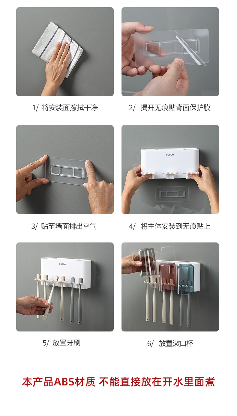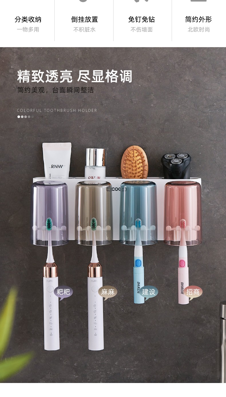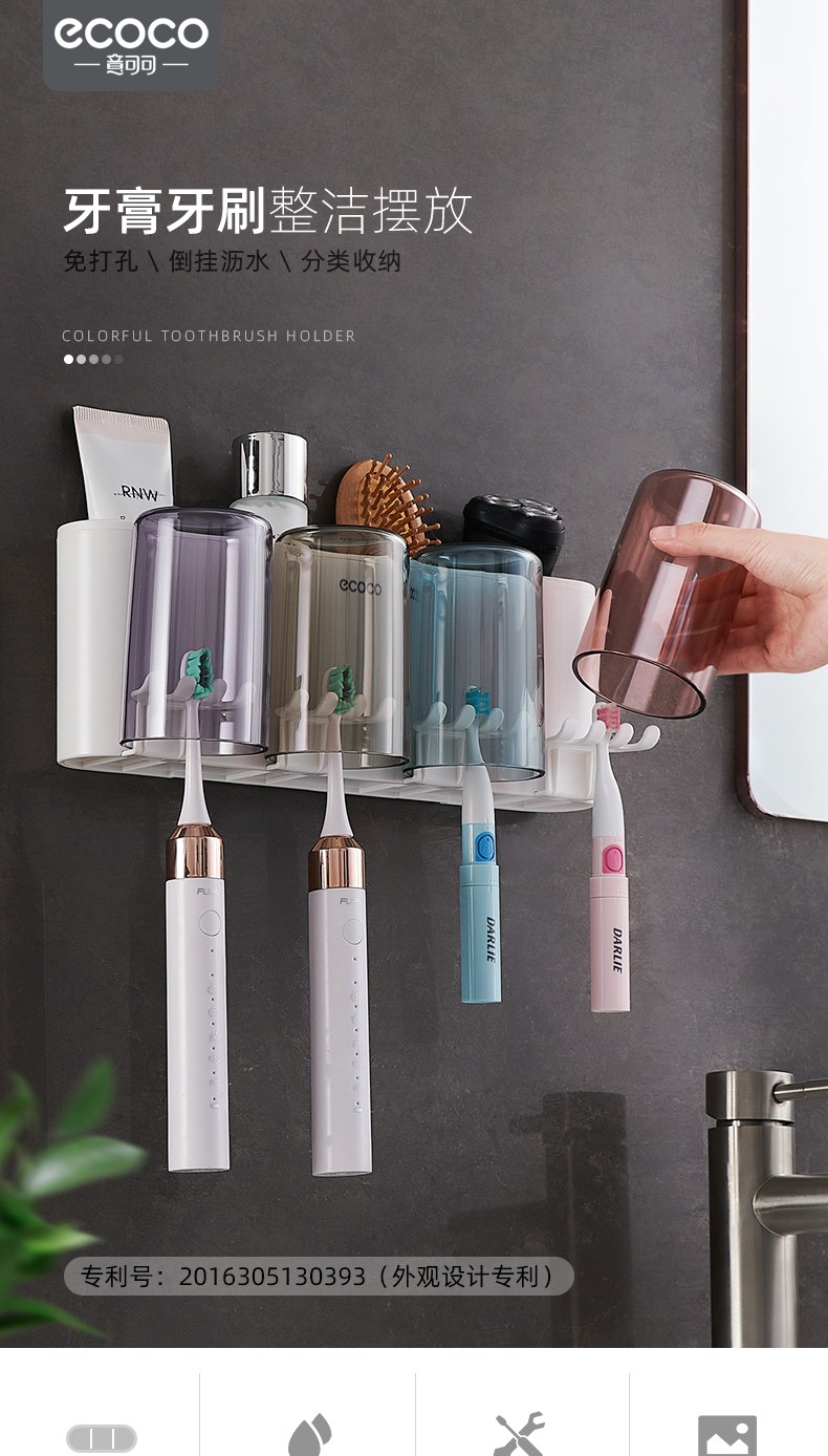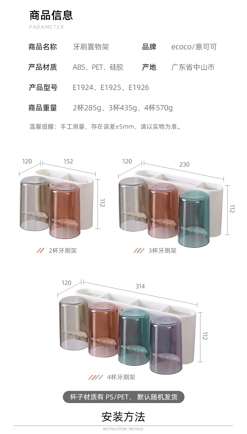商品名称:(汇景缘)意可可牙刷置物架 双杯E1924 浴室卫生间免打孔壁挂式牙膏牙缸漱口杯