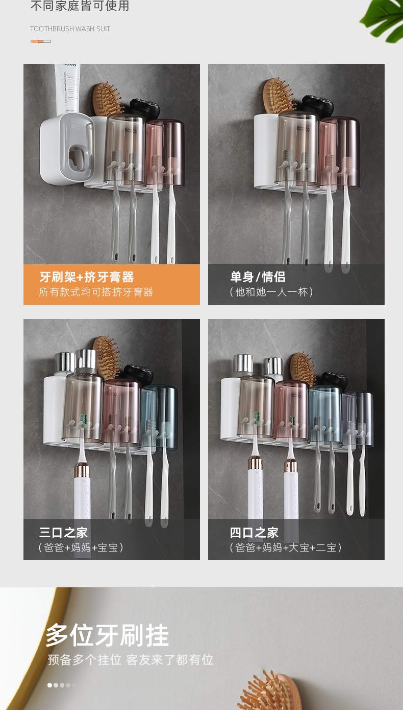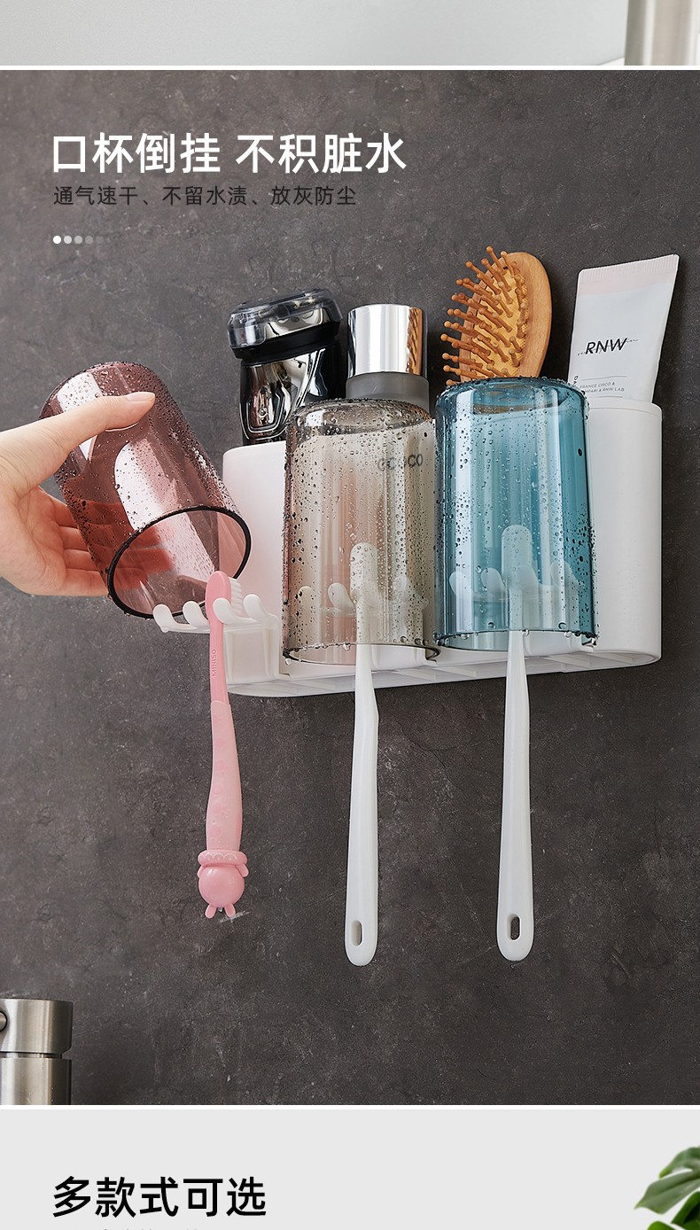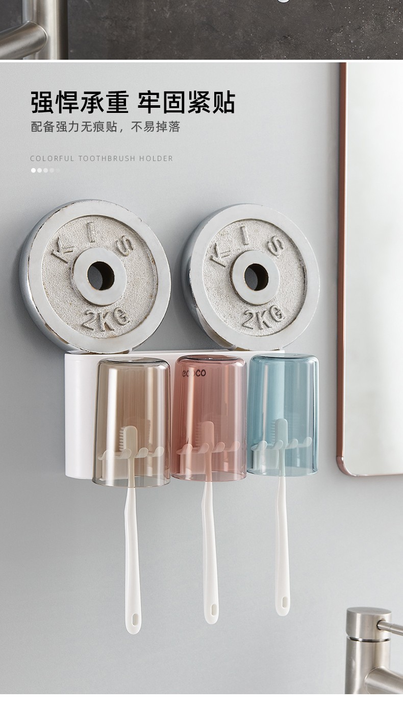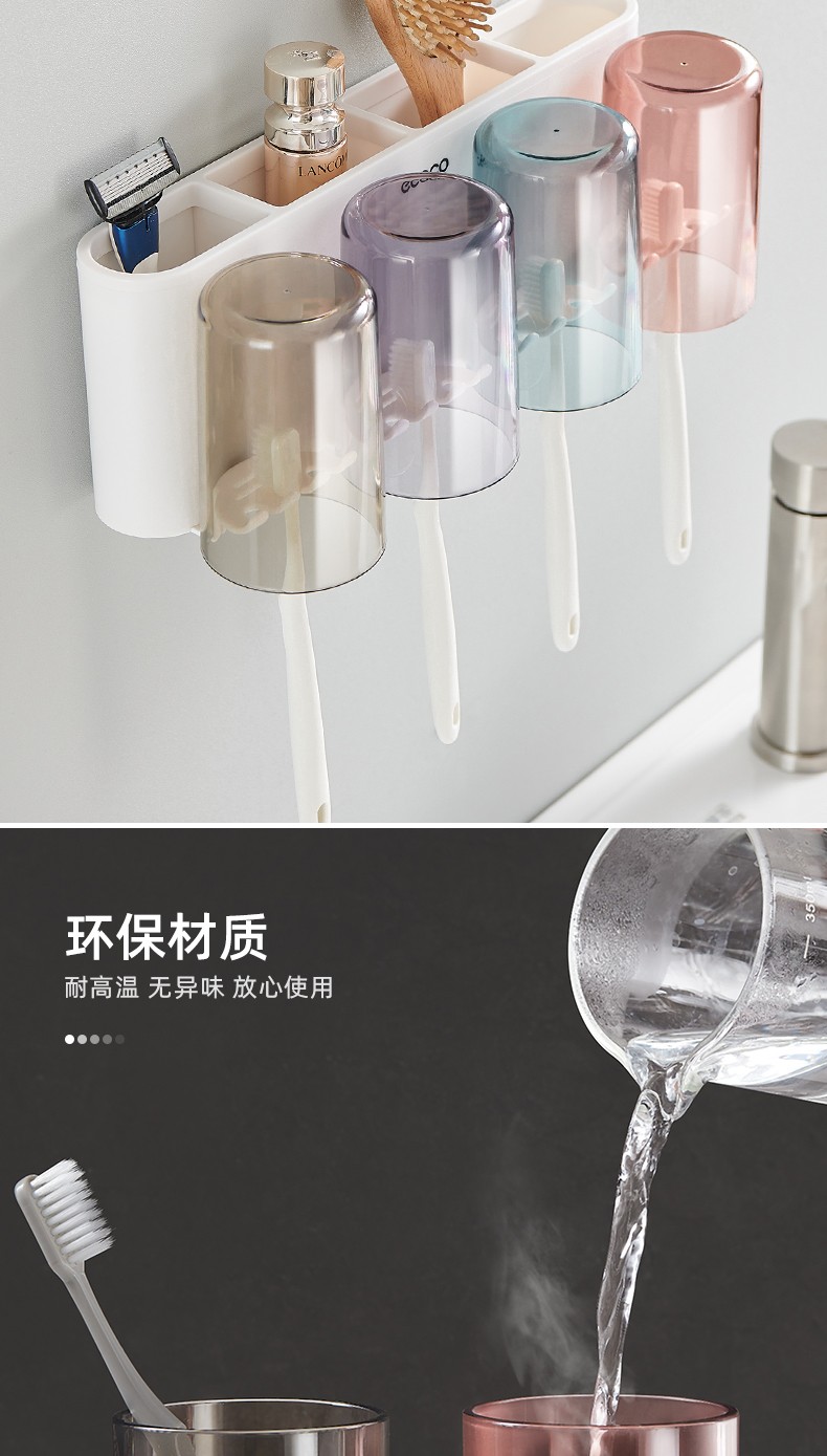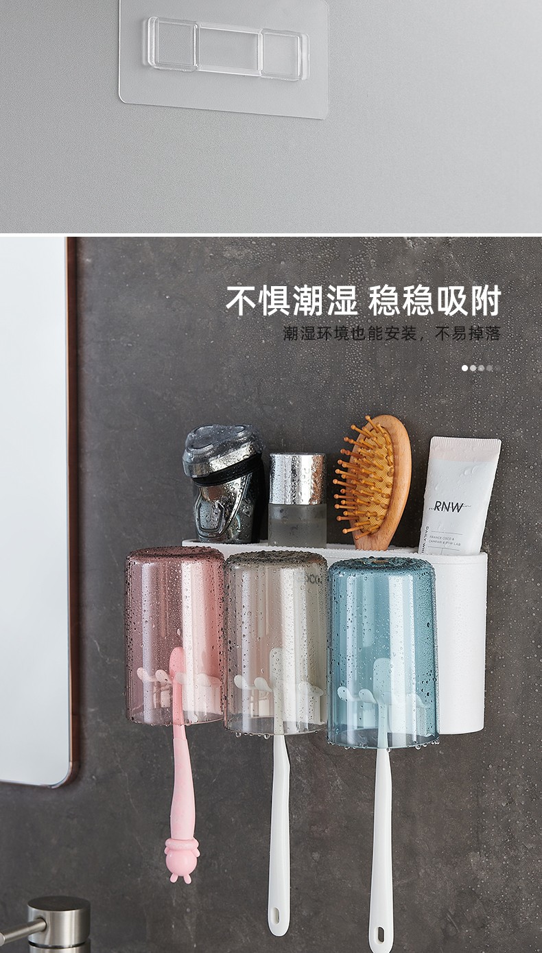 (汇景缘)意可可牙刷置物架 双杯E1924 浴室卫生间免打孔壁挂式牙膏牙缸漱口杯