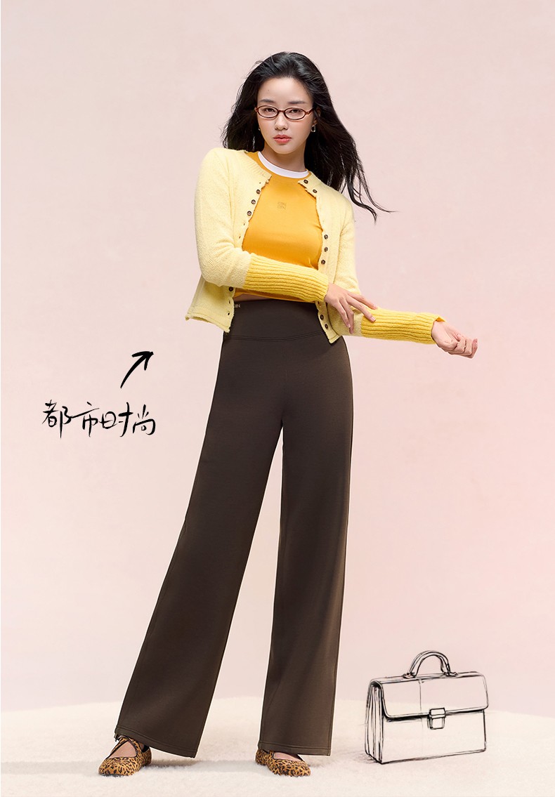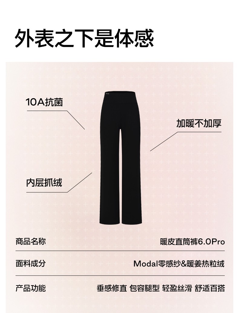 商品名称:(汇景缘)SIINSIIN 加绒直筒裤(8~15度)(常规)女秋冬款黑色裤子显瘦加绒阔腿裤