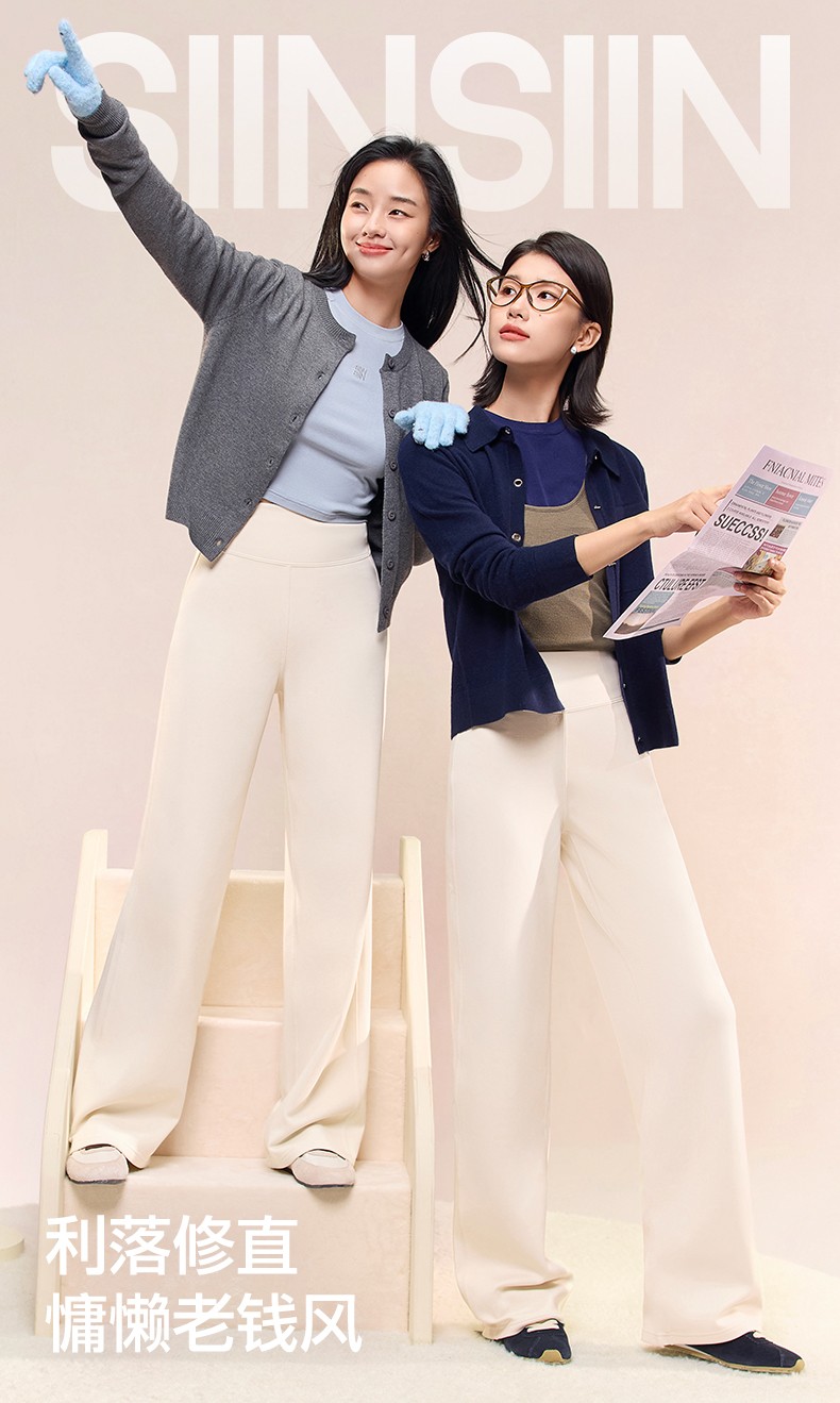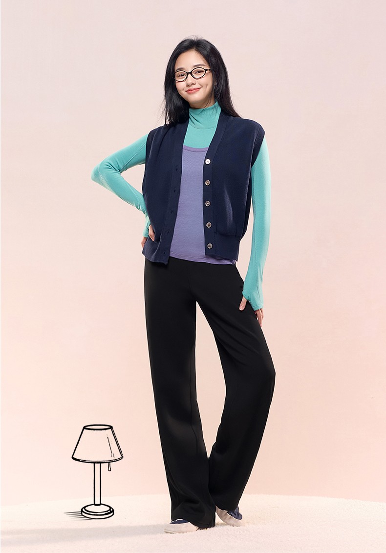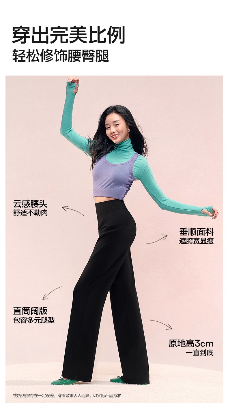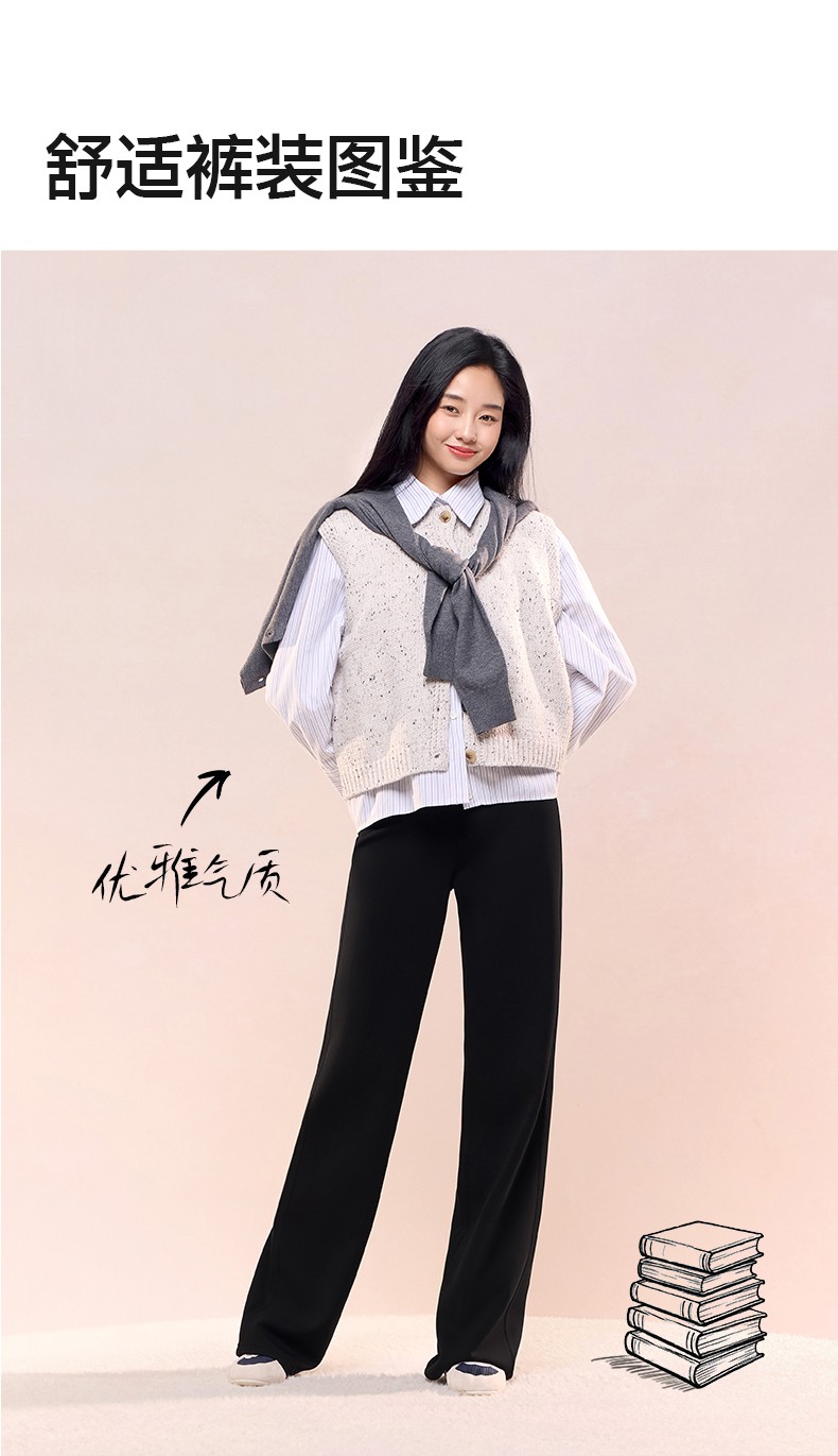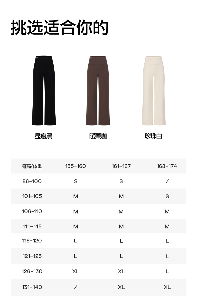 (汇景缘)SIINSIIN 加绒直筒裤(8~15度)(常规)女秋冬款黑色裤子显瘦加绒阔腿裤