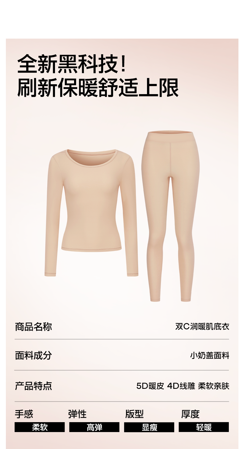 商品名称:(汇景缘)SIINSIIN 双C润暖肌底衣 新款保暖内衣套装女秋冬发热保暖抗菌秋衣秋裤套装打底衫