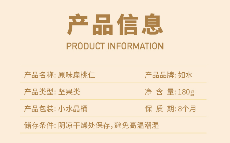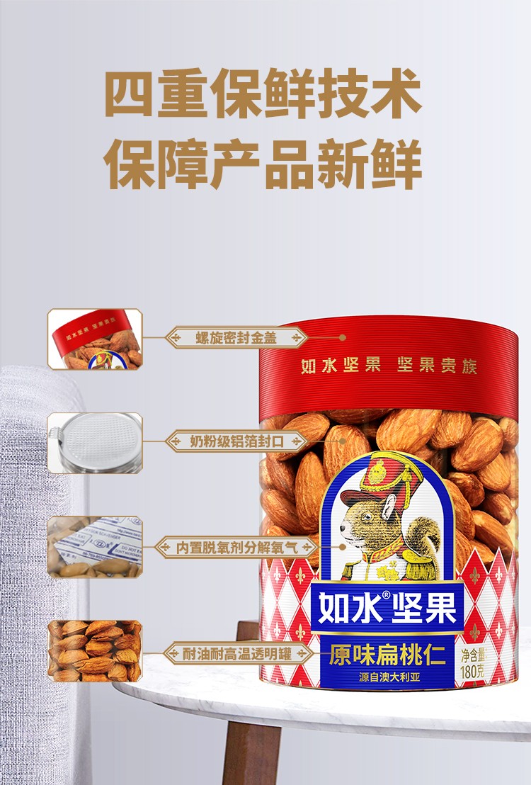 商品名称:(超运·禾贸)如水原味扁桃仁180g 坚果果干休闲零食