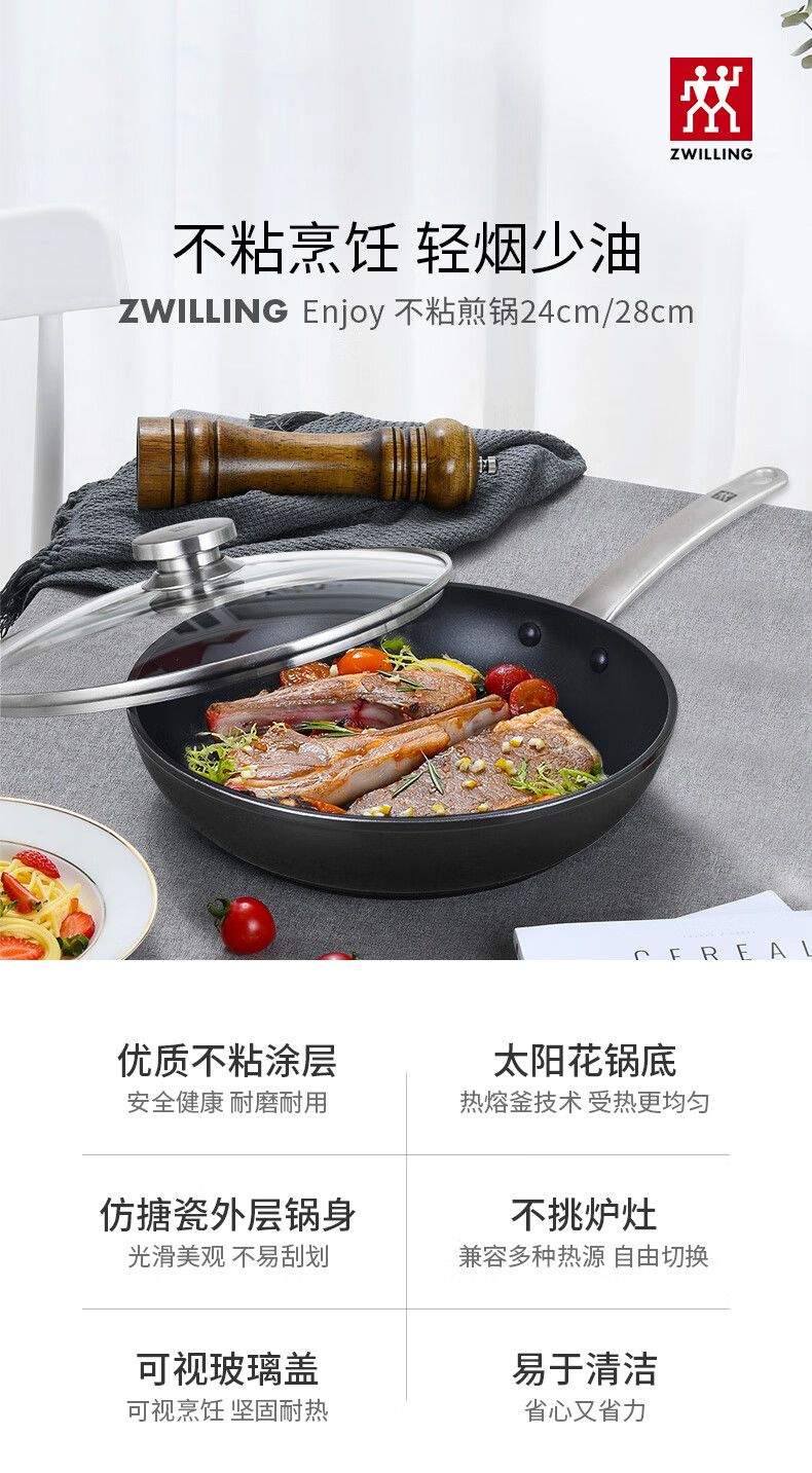 (巨邦佑)T+双立人Enjoy深煎锅黑色28cm煎蛋煎饼煎牛排多用煎炒锅电磁炉明火可以用