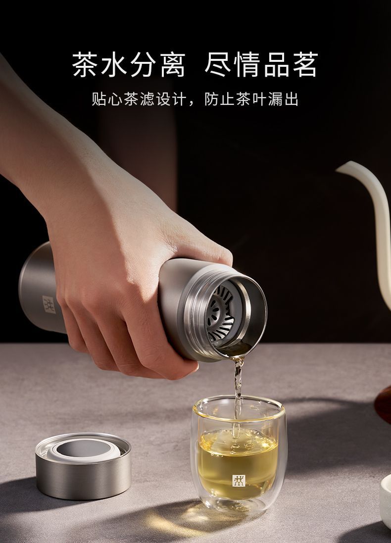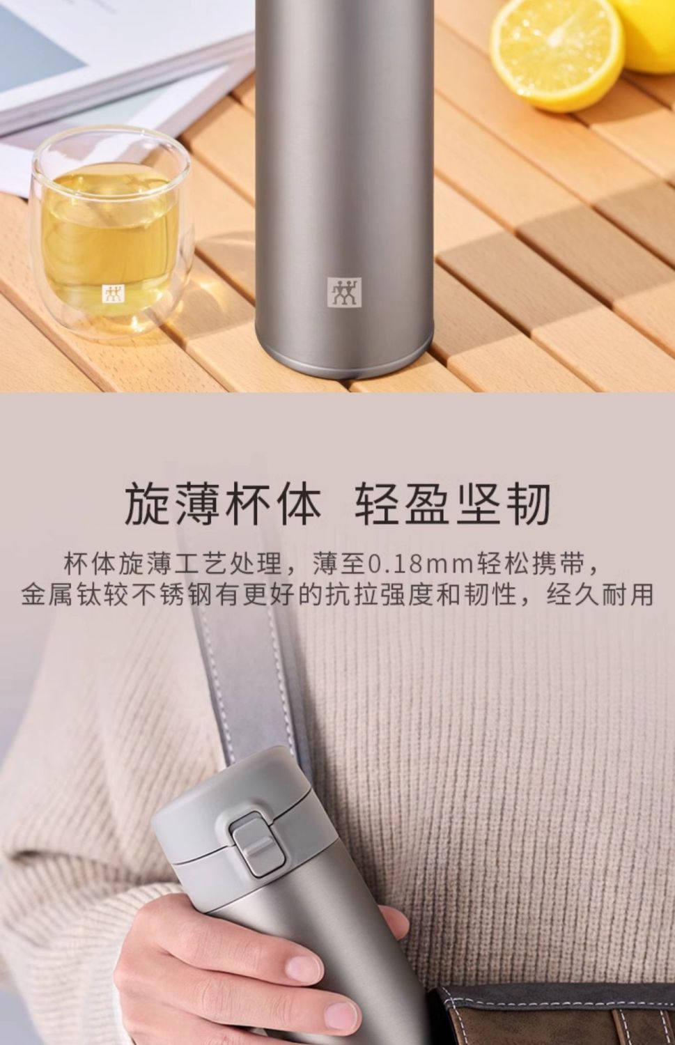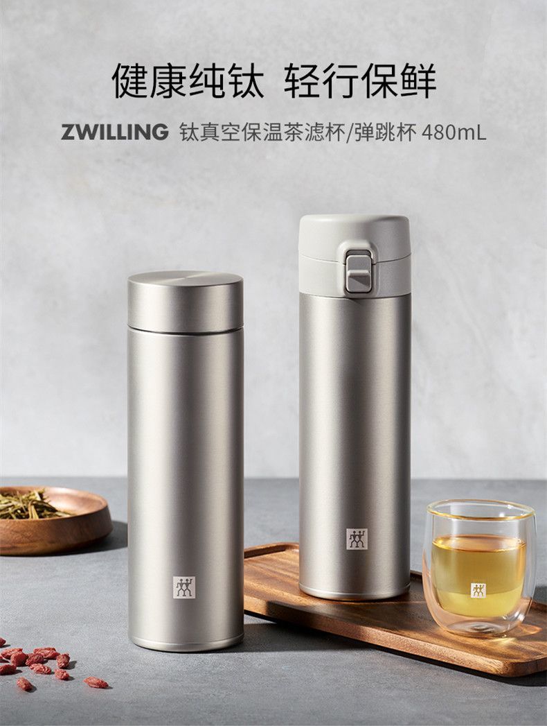 (巨邦佑)T+双立人真空保温钛弹跳杯480mL便携抗菌可拆洗高档商务家用水杯