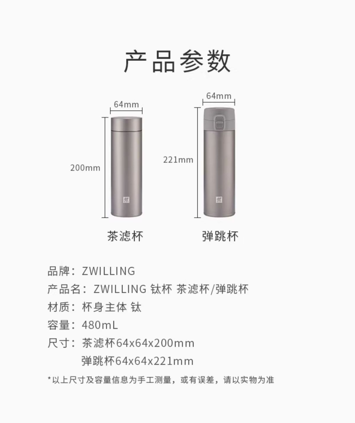 商品名称:(巨邦佑)T+双立人真空保温钛弹跳杯480mL便携抗菌可拆洗高档商务家用水杯