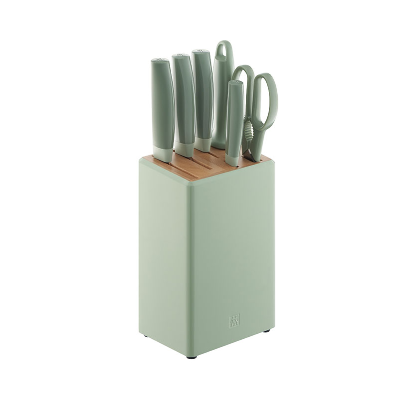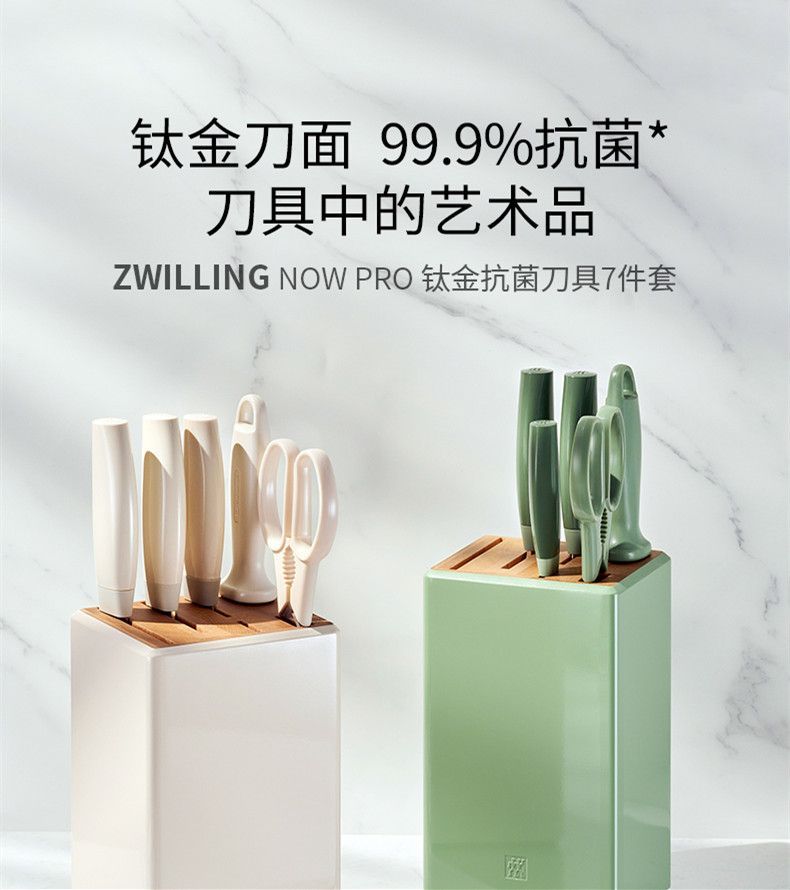 (巨邦佑)T+双立人NOW Pro钛金抗菌刀具7件套含钛抗菌品质高端菜刀套装(薄荷绿,奶油白)