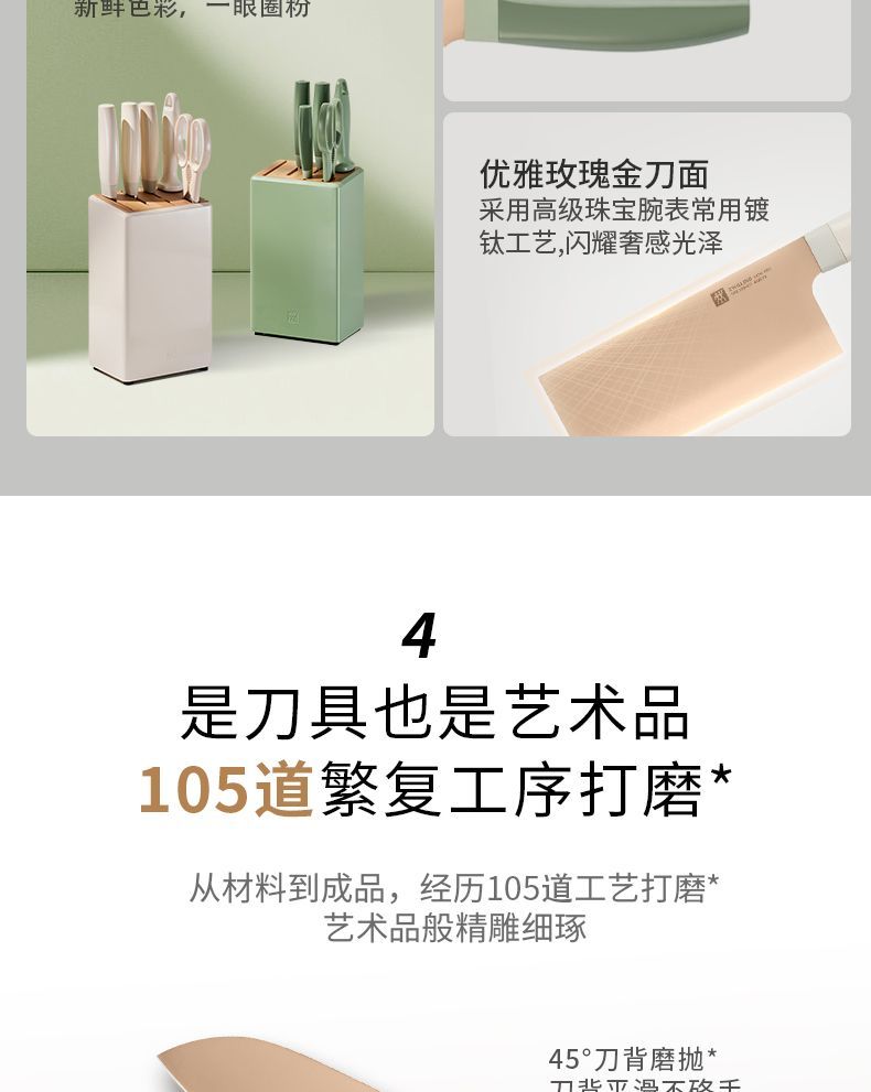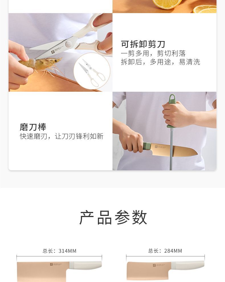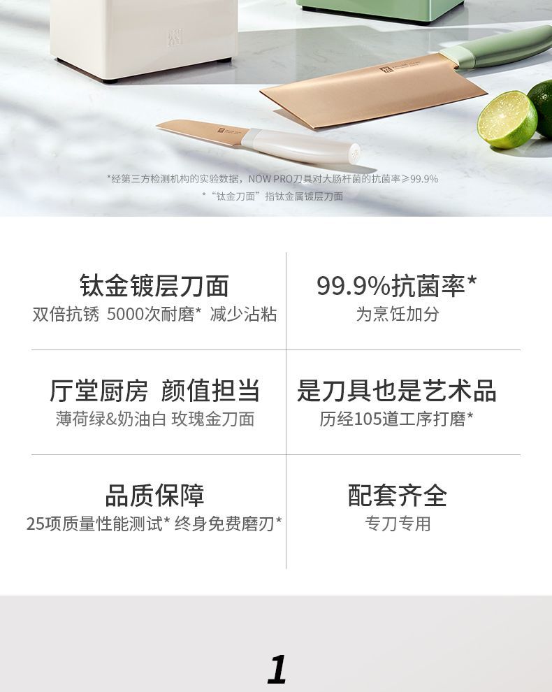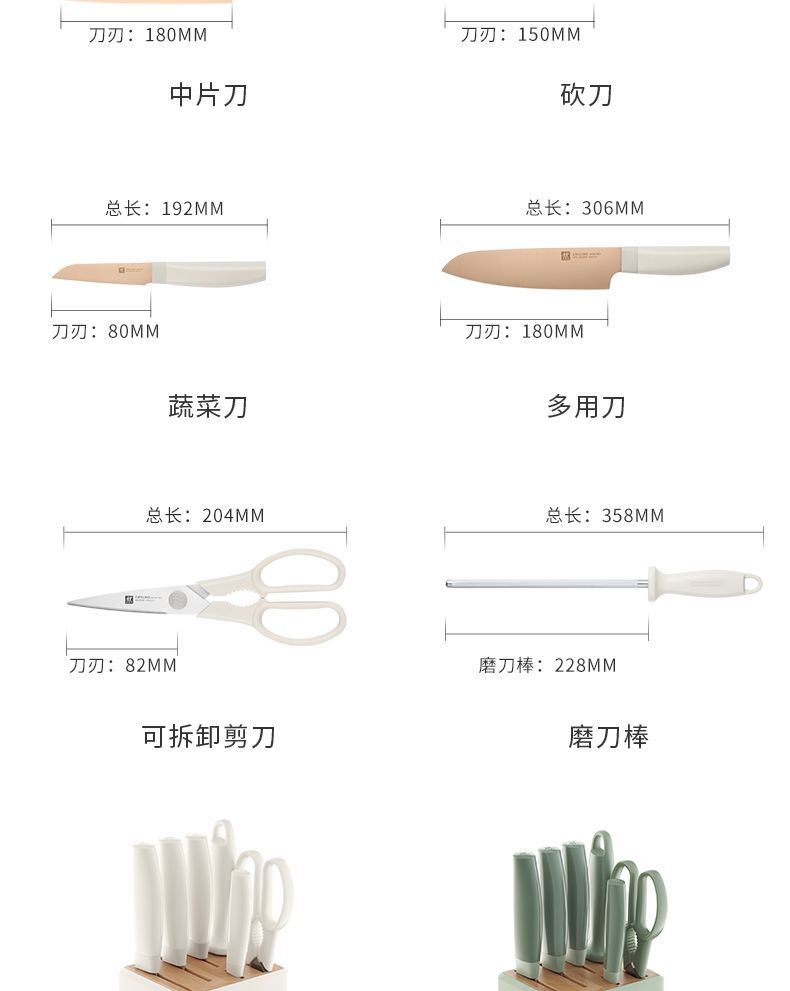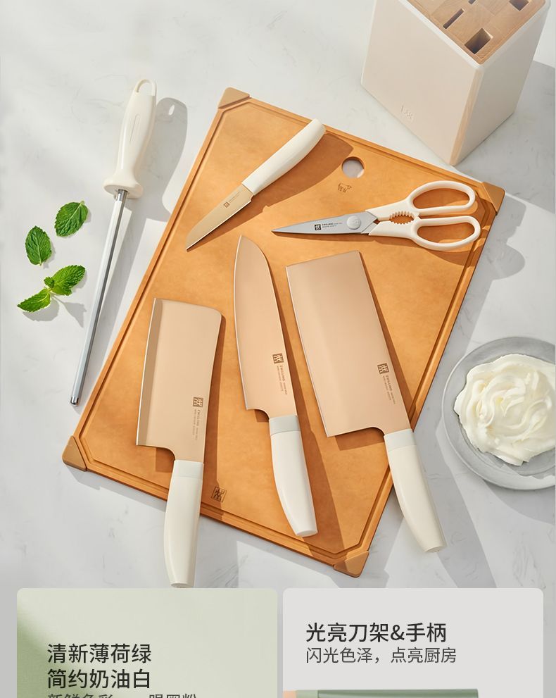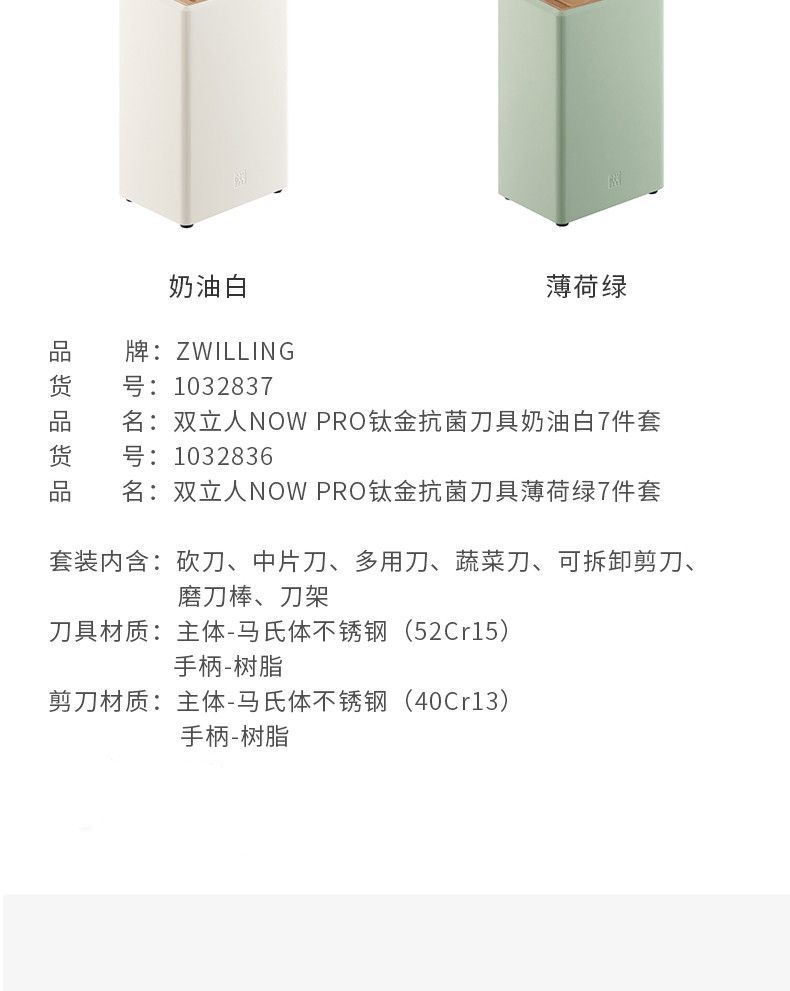 商品名称:(巨邦佑)T+双立人NOW Pro钛金抗菌刀具7件套含钛抗菌品质高端菜刀套装(薄荷绿,奶油白)