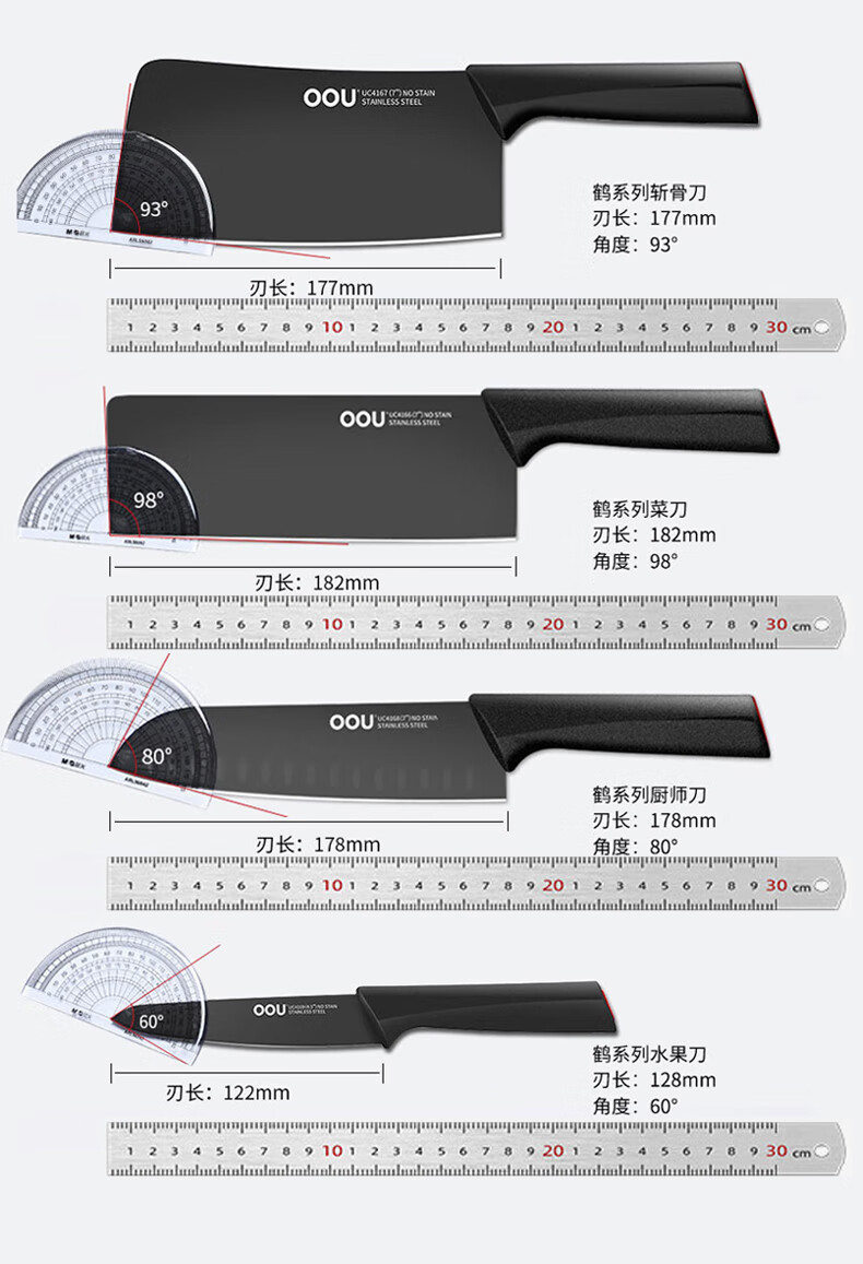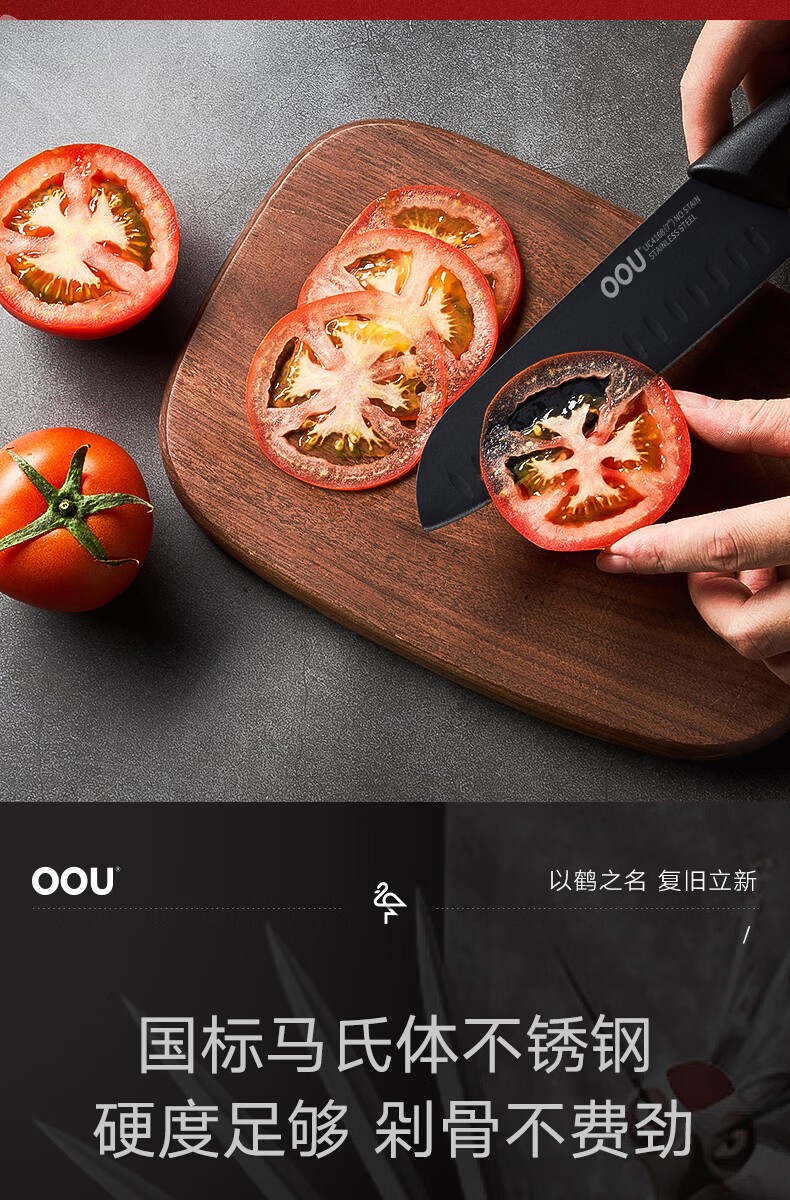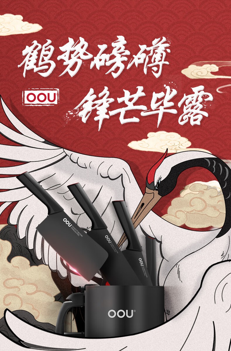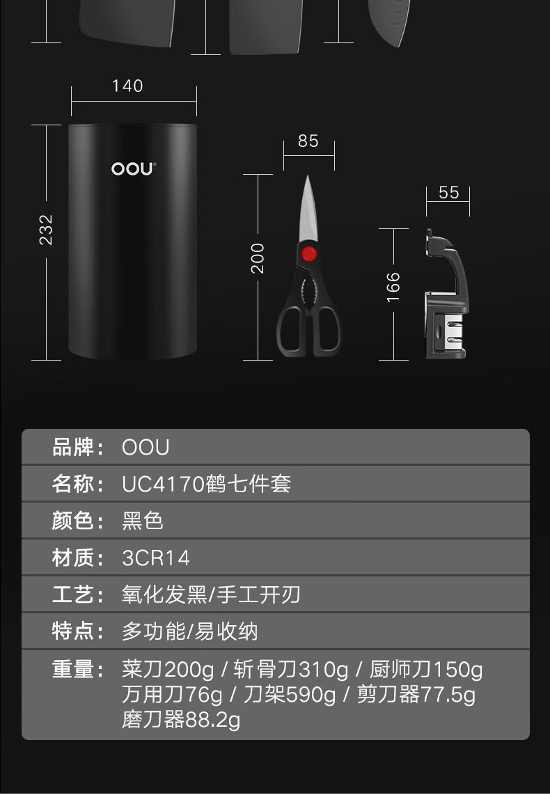 商品名称:(超运·禾贸)OOU UC4170 鹤系列七件套黑色 切菜刀剪刀水果刀具优质钢材套装抗氧防锈