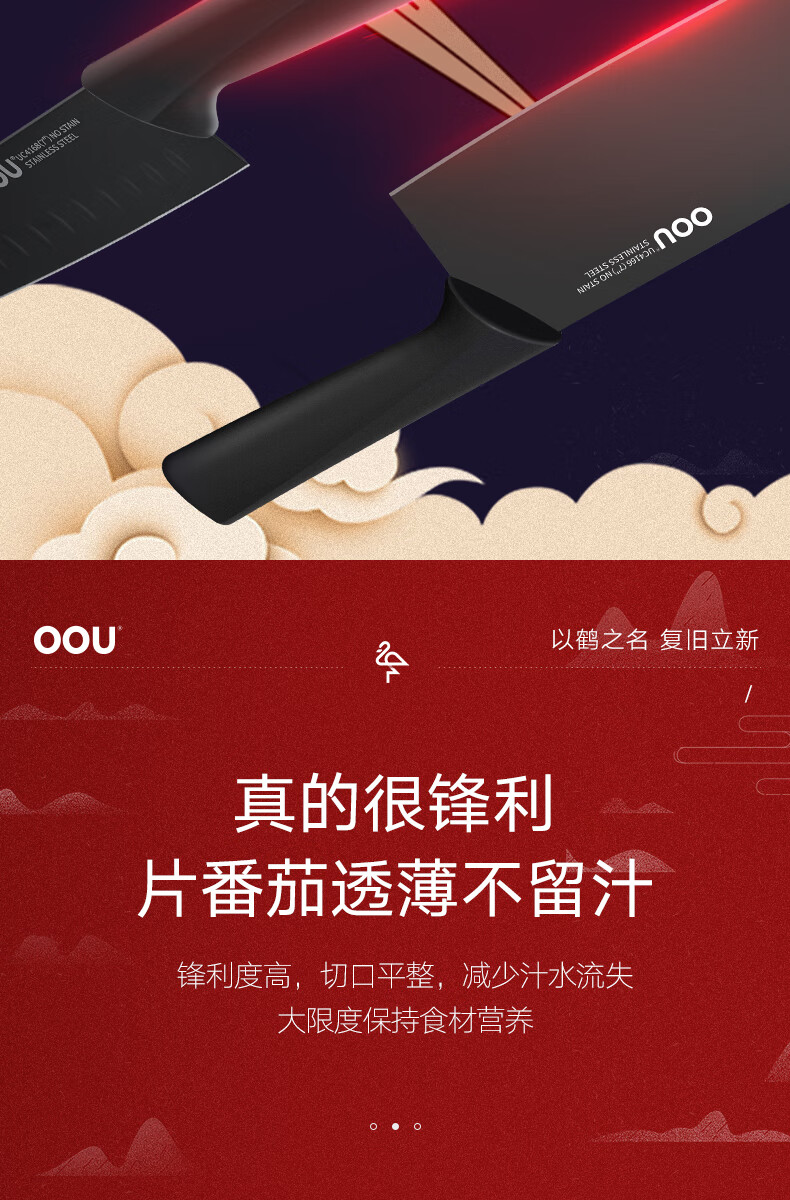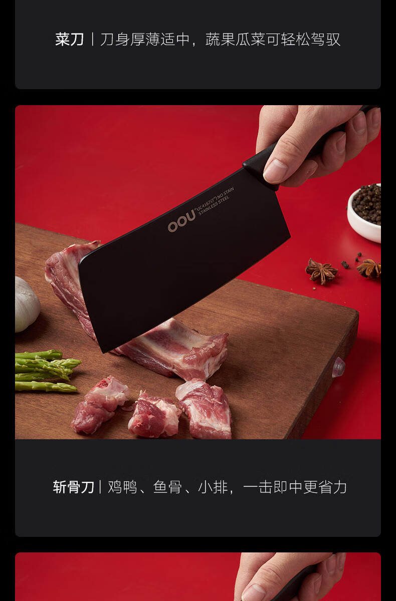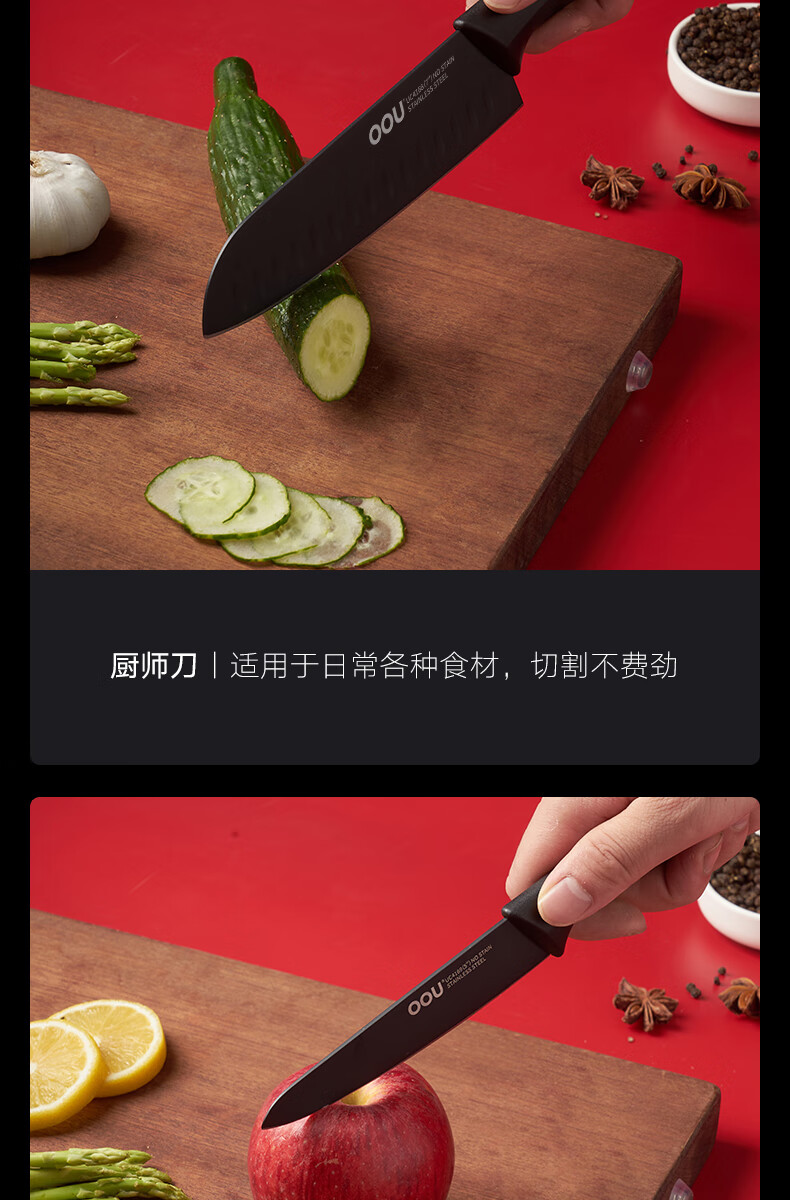 商品名称:(超运·禾贸)OOU UC4170 鹤系列七件套黑色 切菜刀剪刀水果刀具优质钢材套装抗氧防锈
