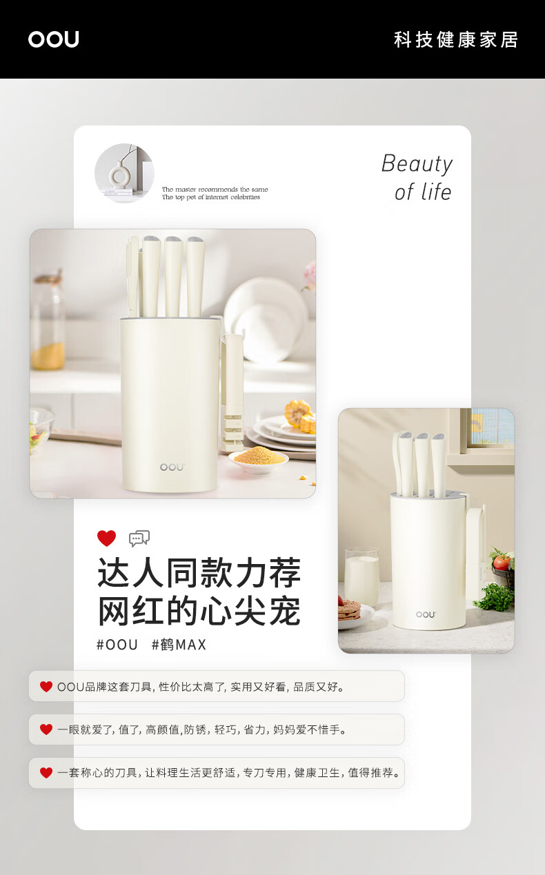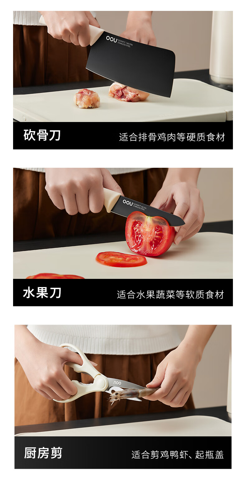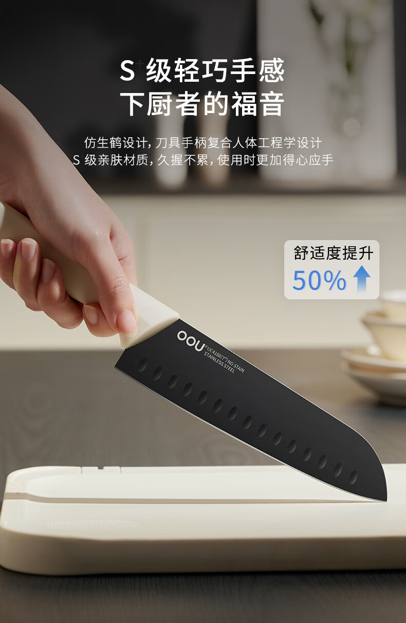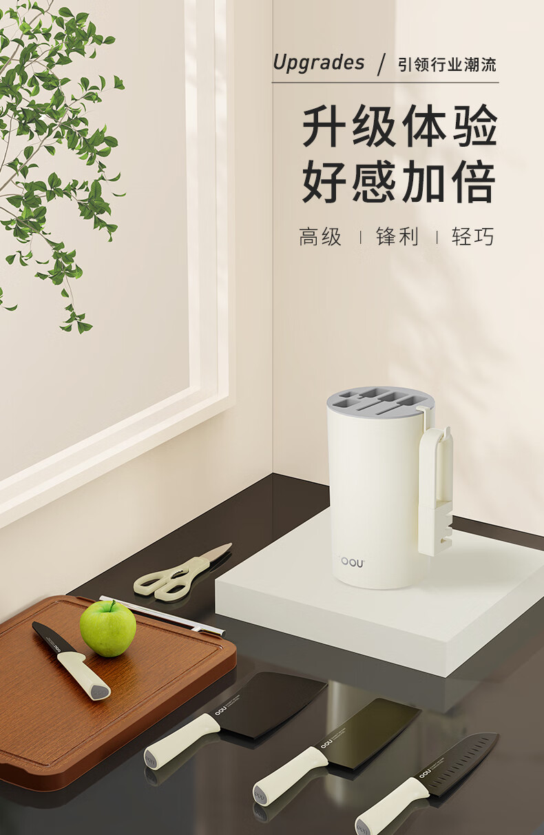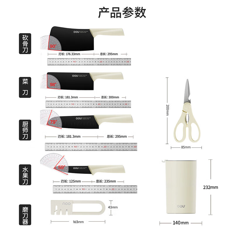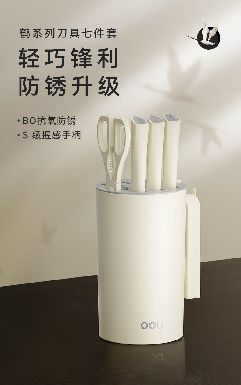 商品名称:(超运·禾贸)OOU DJ0069 鹤系列七件套 白色 优质钢材家用菜刀切肉刀剪刀带磨刀器抗氧防锈
