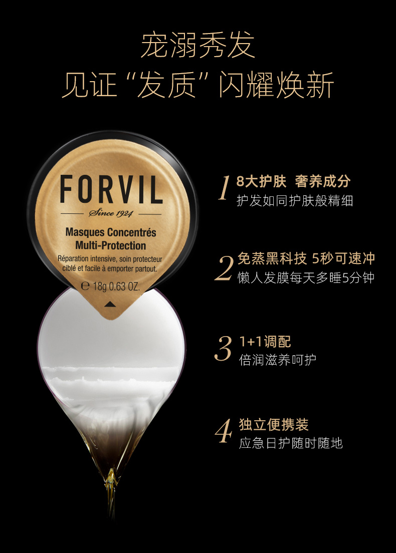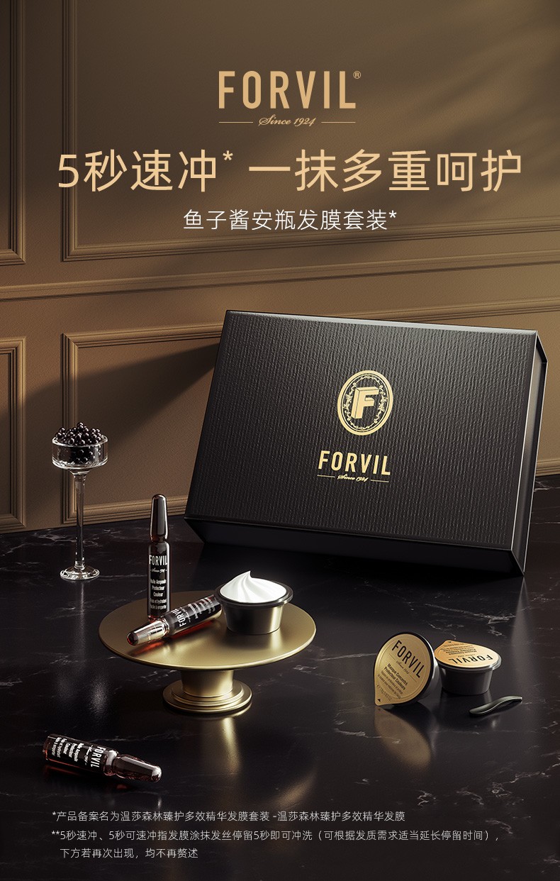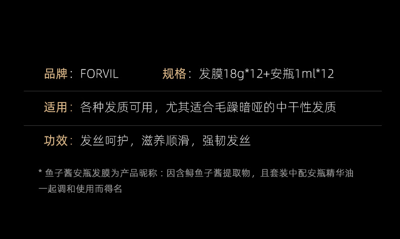 商品名称:(世星阳光)+温莎森林FORVIL 鱼子酱发膜 18g*12支 修复干枯毛躁烫染受损柔光顺滑免蒸速冲