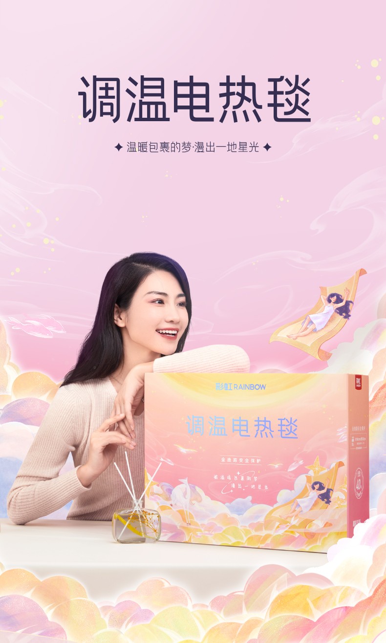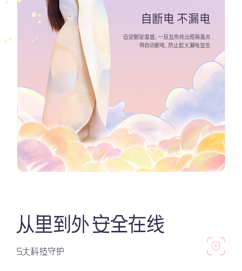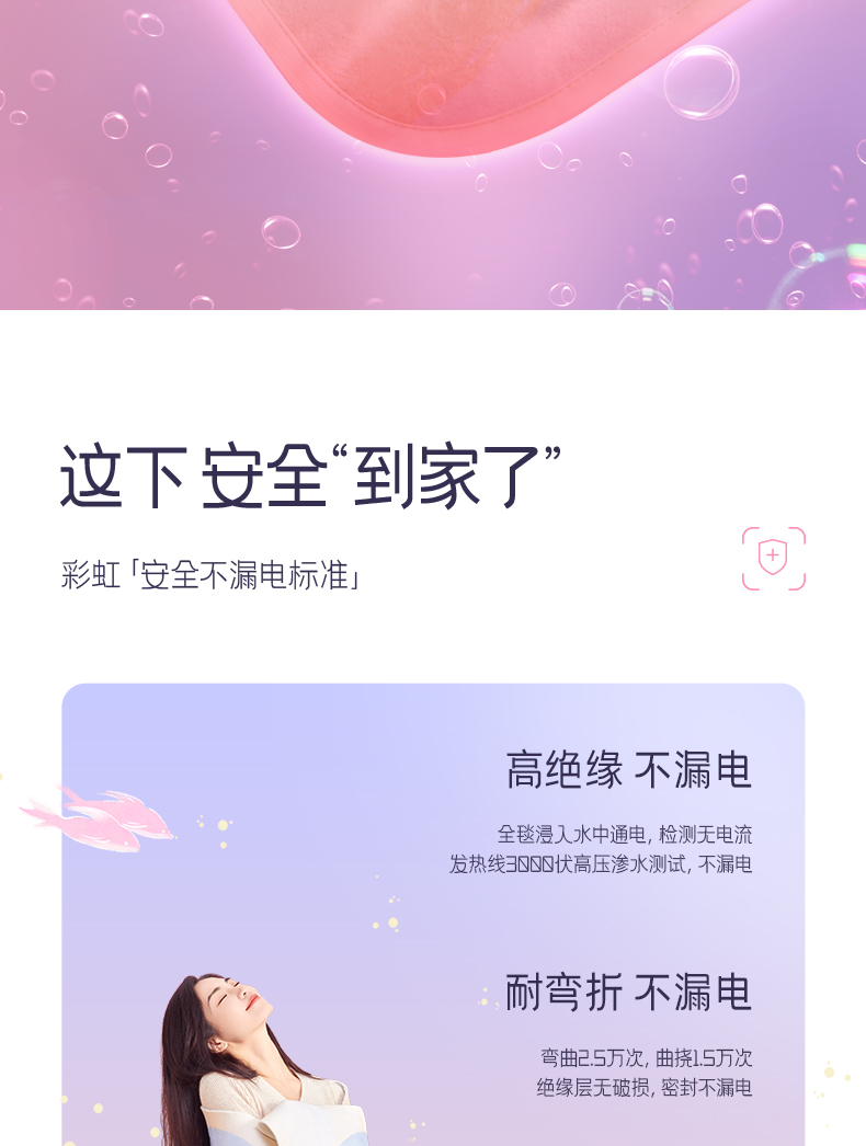 (世星阳光)+彩虹 XL1352-B 全线路安全保护双控双温电热毯(双人印花)1.5mx1.8m高温断电保护 舒适亲肤