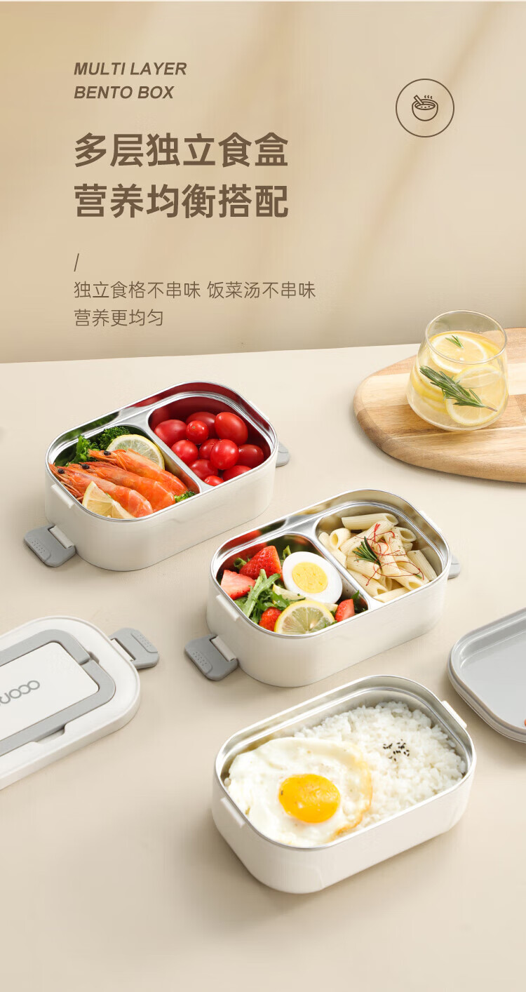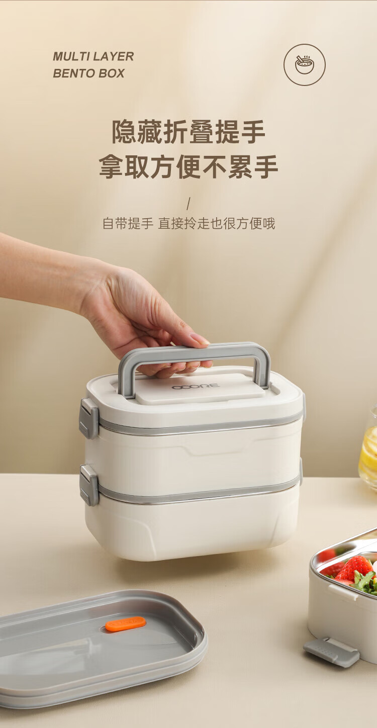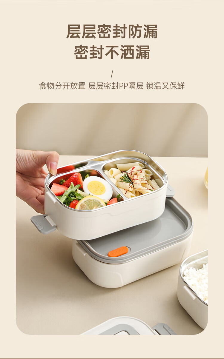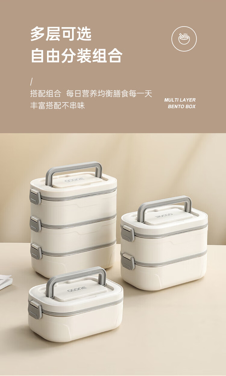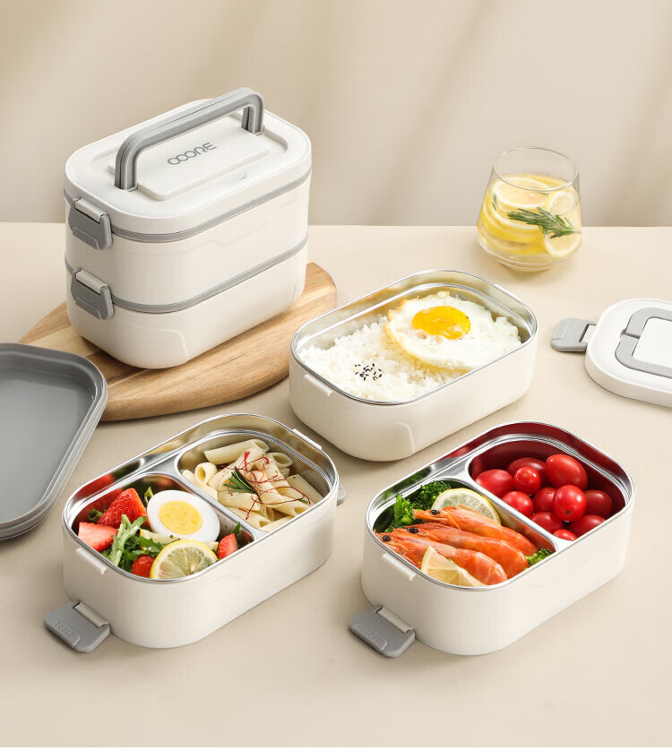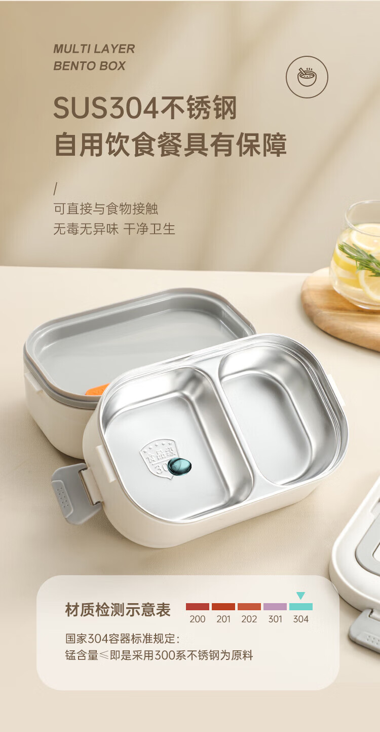 (巨邦佑)BJ+物芯质造Fucos304便携饭盒 单层800ml 单层双层三层可选自由组合分层密封