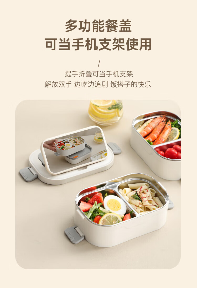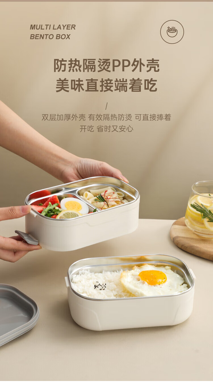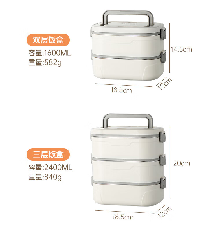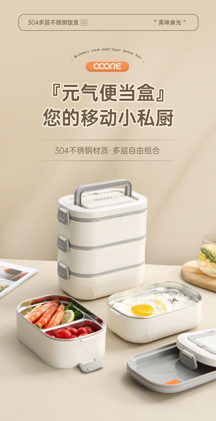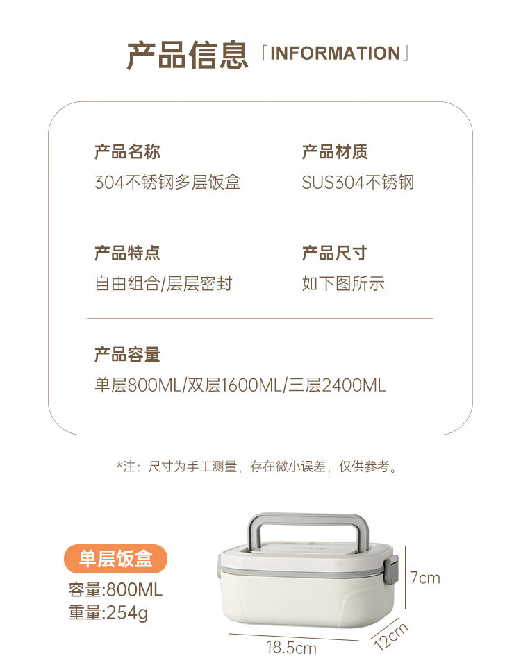 (巨邦佑)BJ+物芯质造Fucos304便携饭盒 单层800ml 单层双层三层可选自由组合分层密封