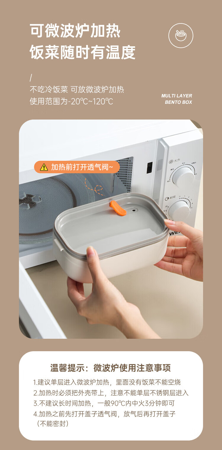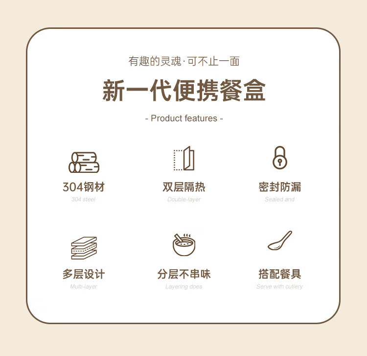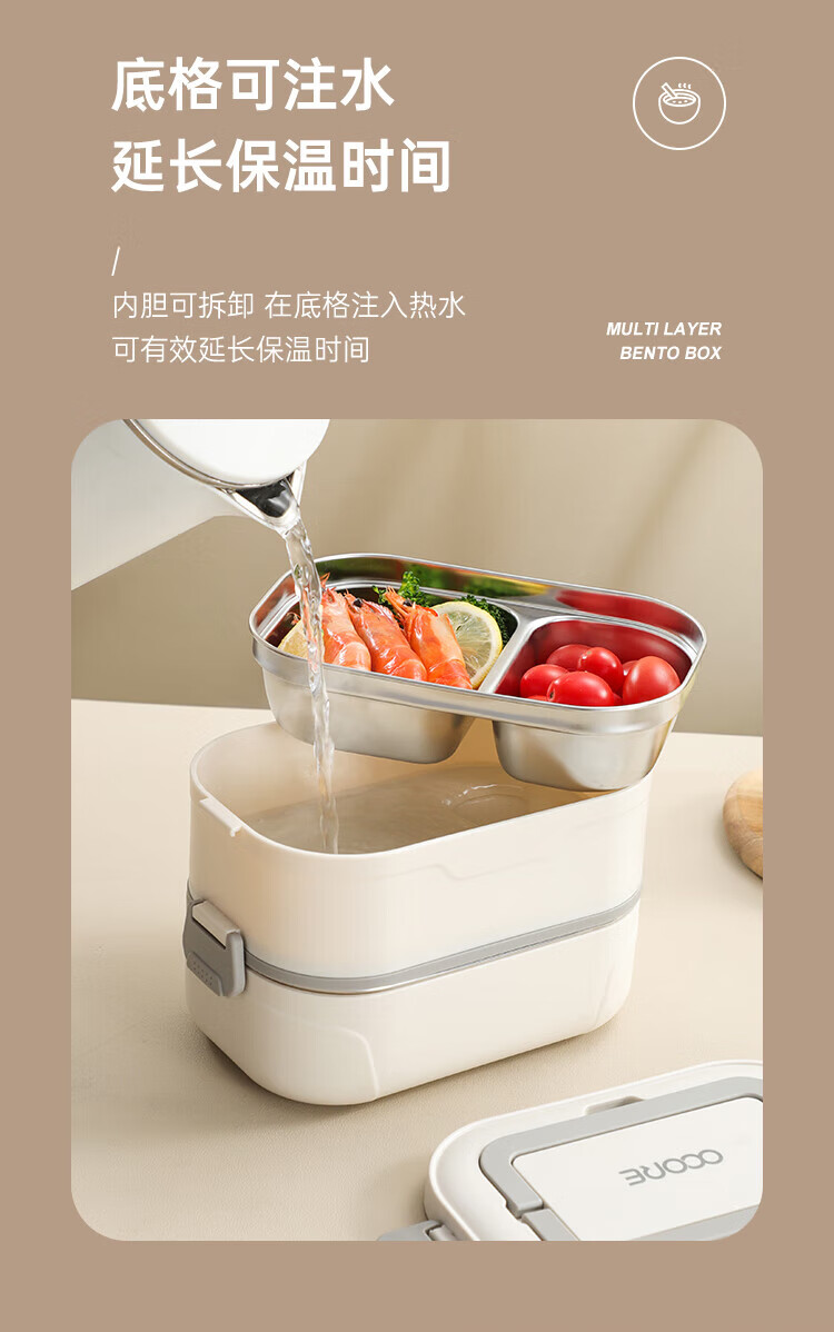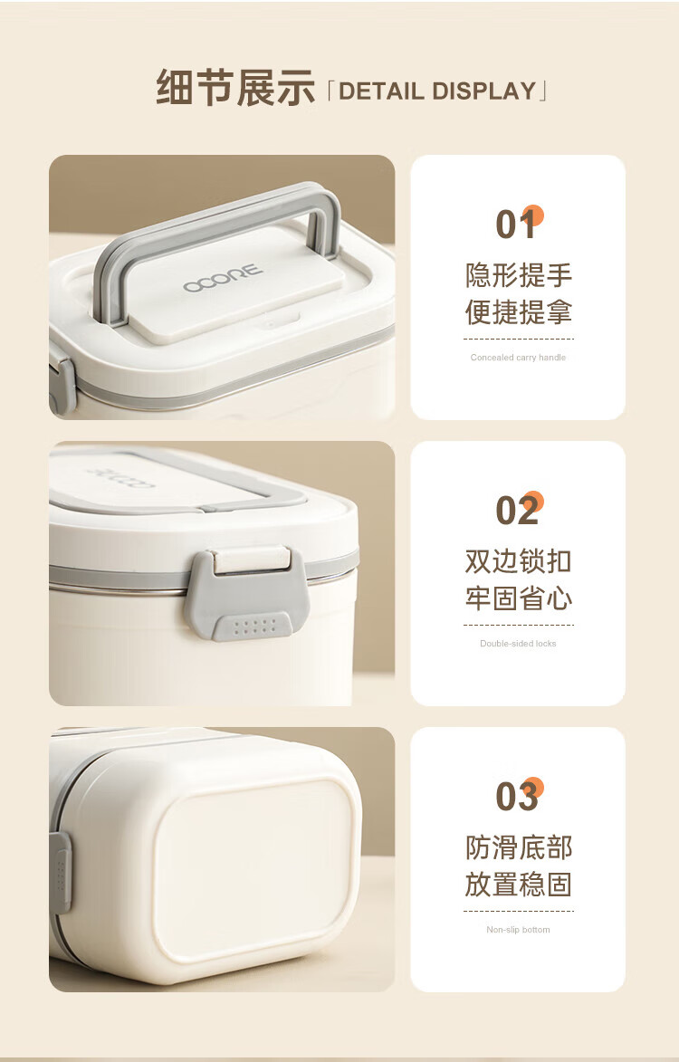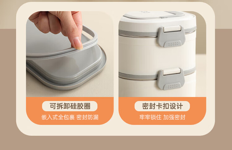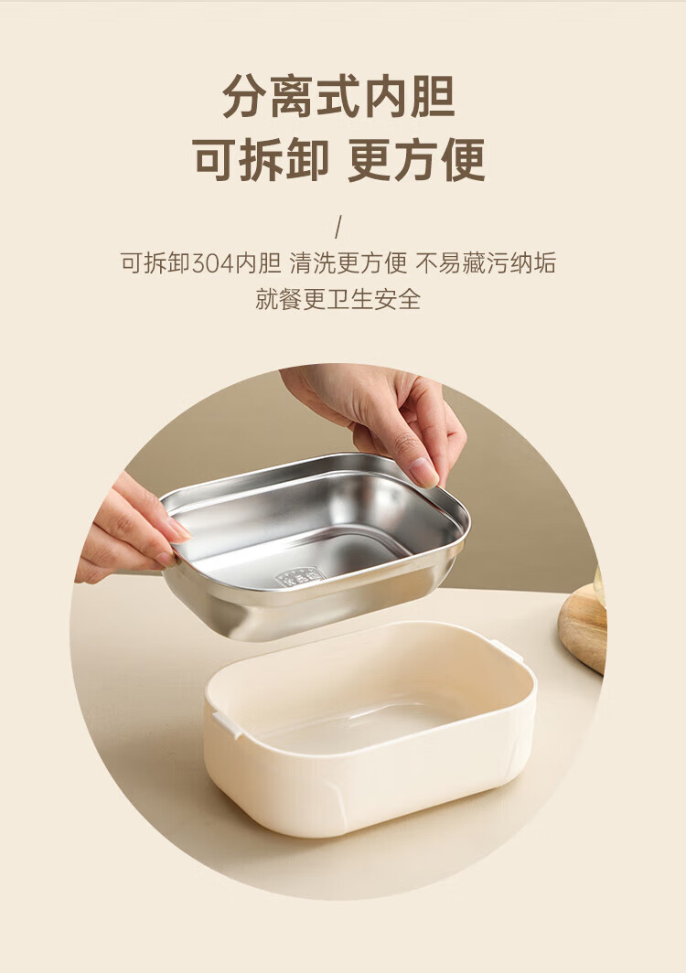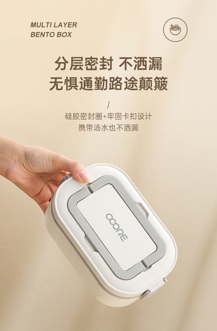 (巨邦佑)BJ+物芯质造Fucos304便携饭盒 单层800ml 单层双层三层可选自由组合分层密封