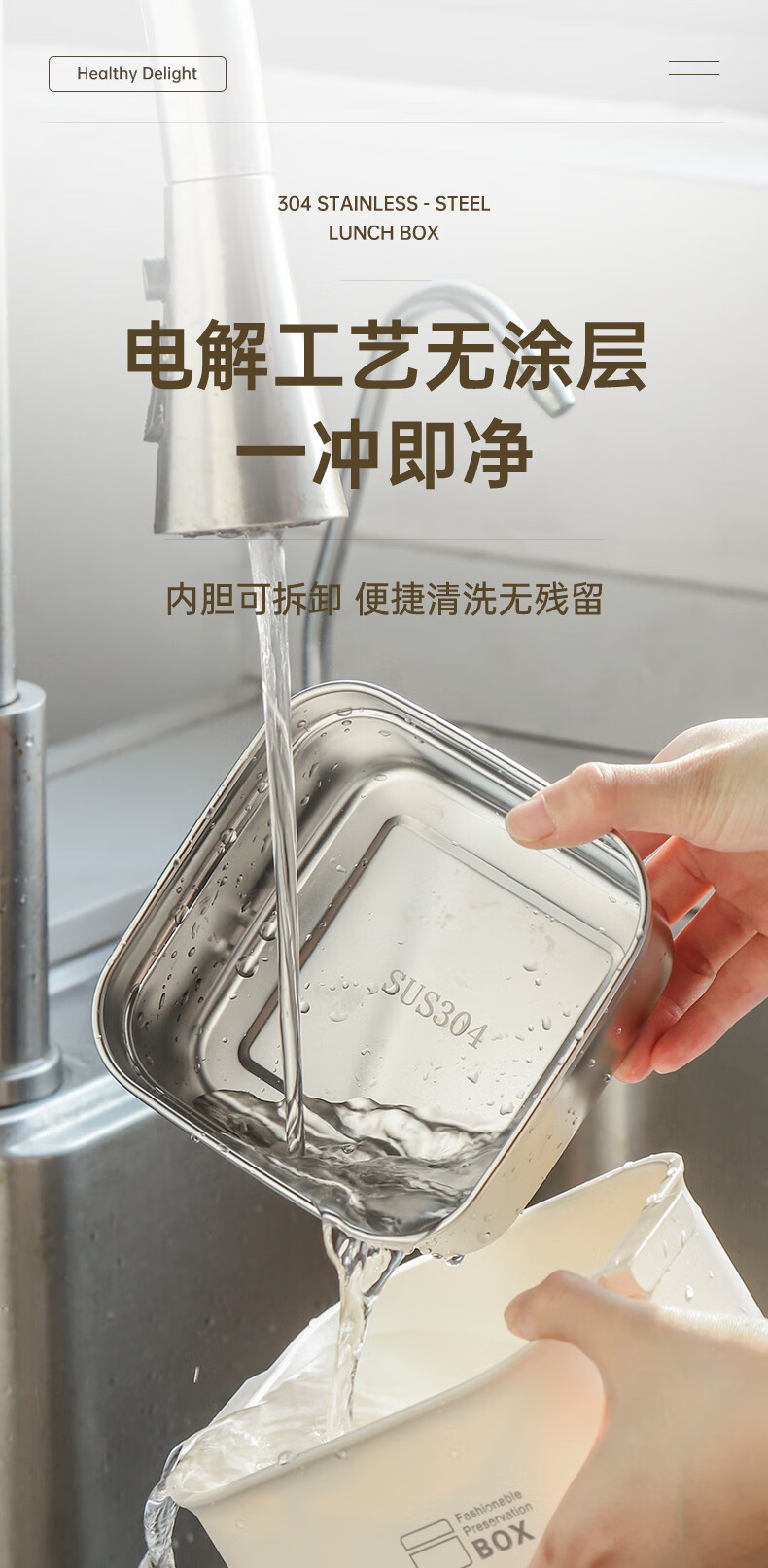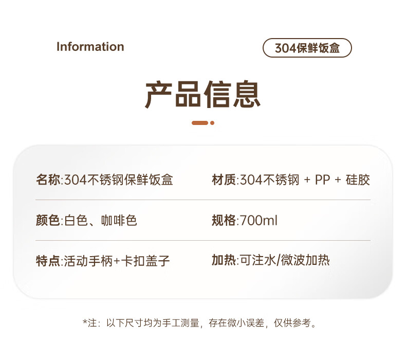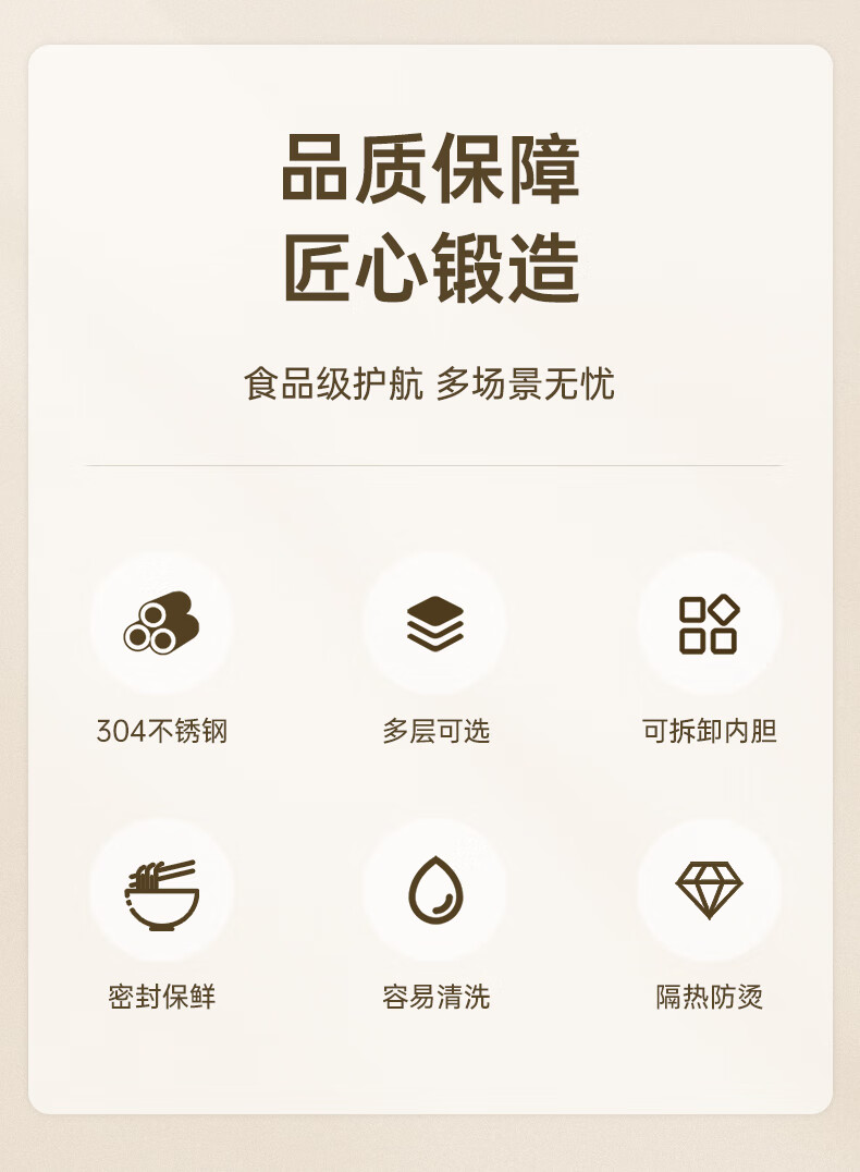 商品名称:(巨邦佑)BJ+物芯质造304不锈钢保鲜饭盒700ml 米色咖色 可拆卸内胆密封保鲜容易清洗隔热防烫