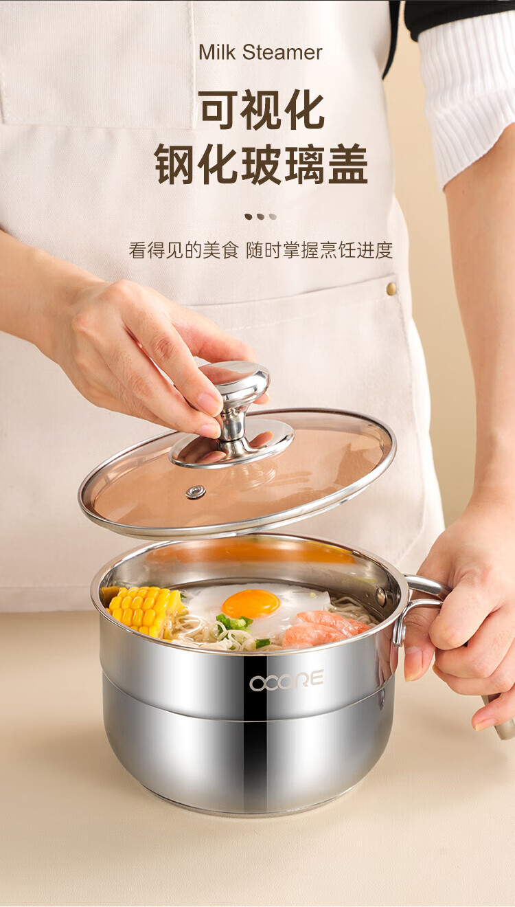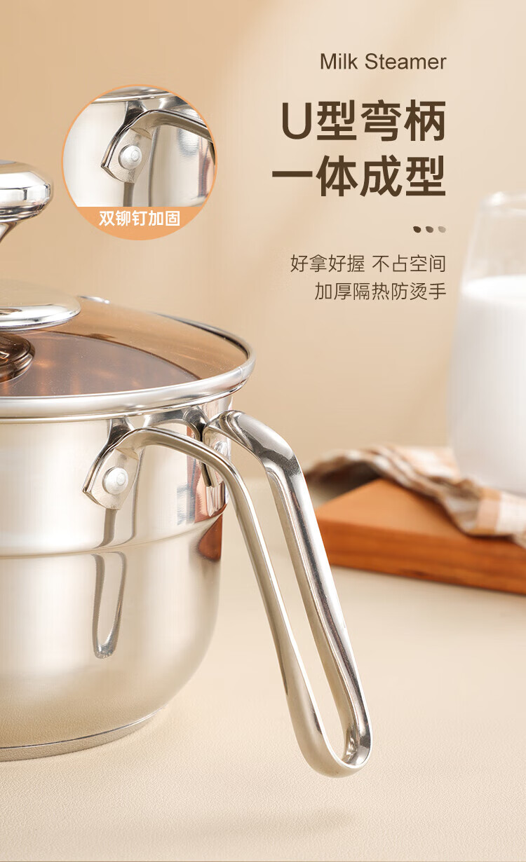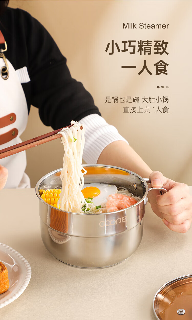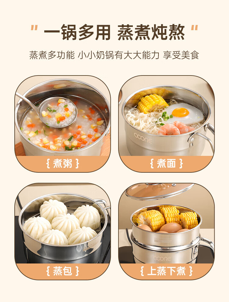 商品名称:(巨邦佑)BJ+物芯质造Smart 304钢U型柄奶蒸锅带蒸格16cm 一锅多用炉具通用