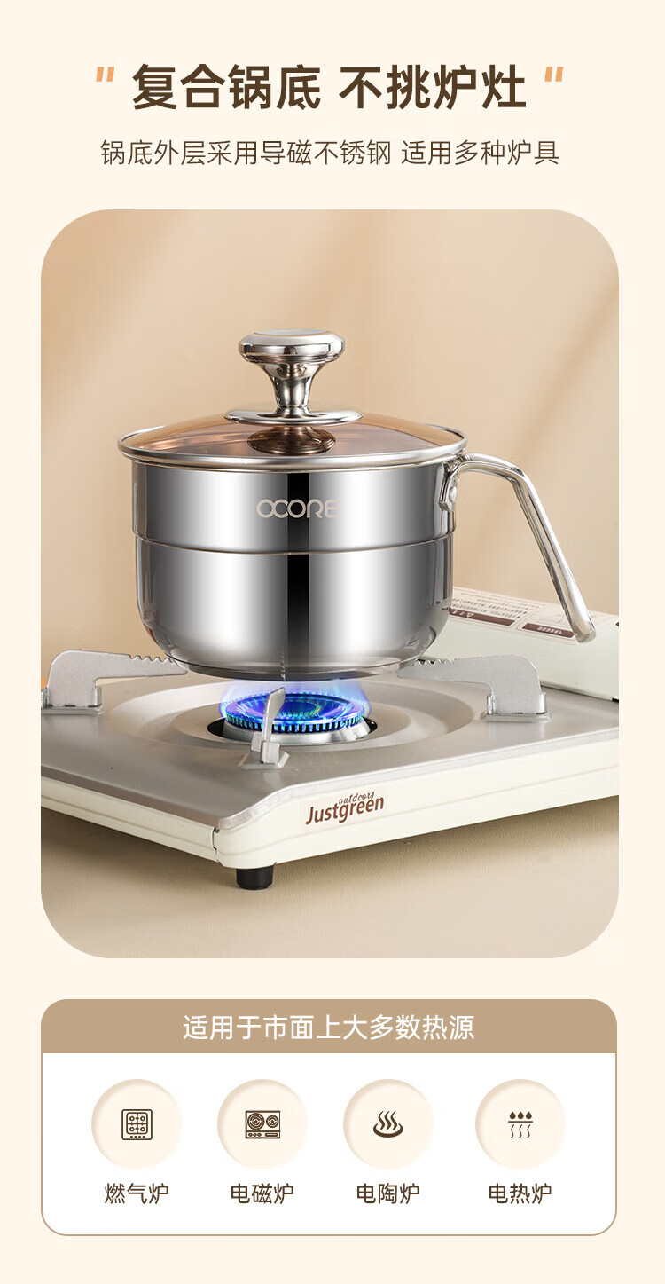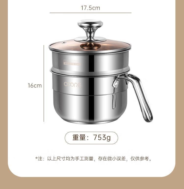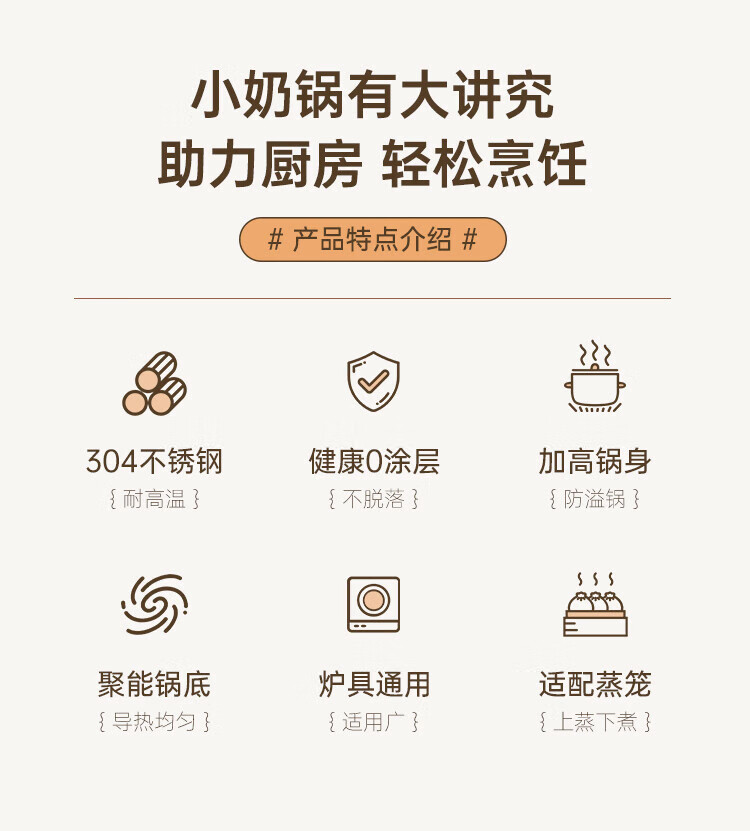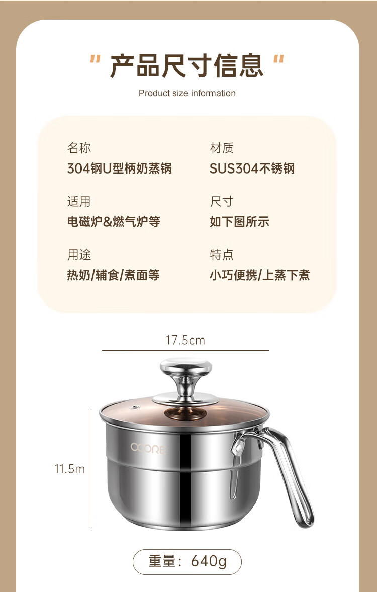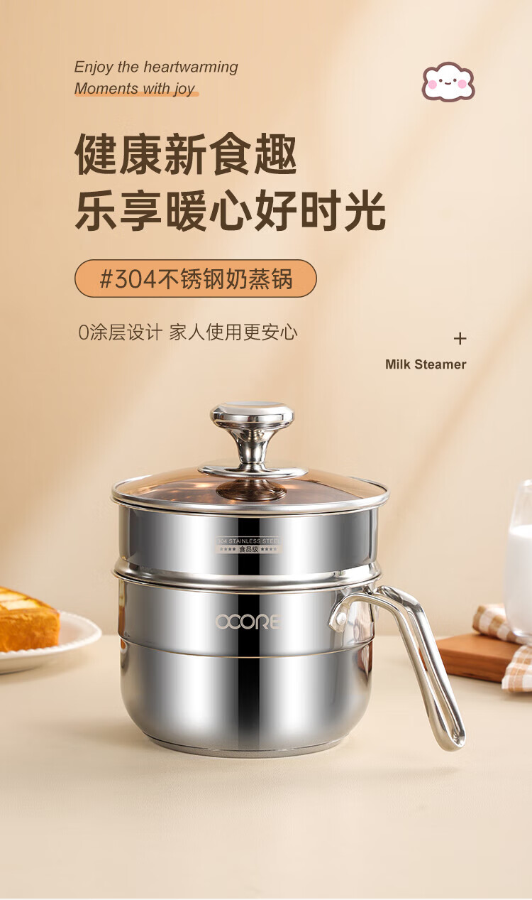 商品名称:(巨邦佑)BJ+物芯质造Smart 304钢U型柄奶蒸锅带蒸格16cm 一锅多用炉具通用