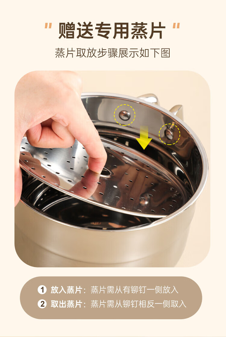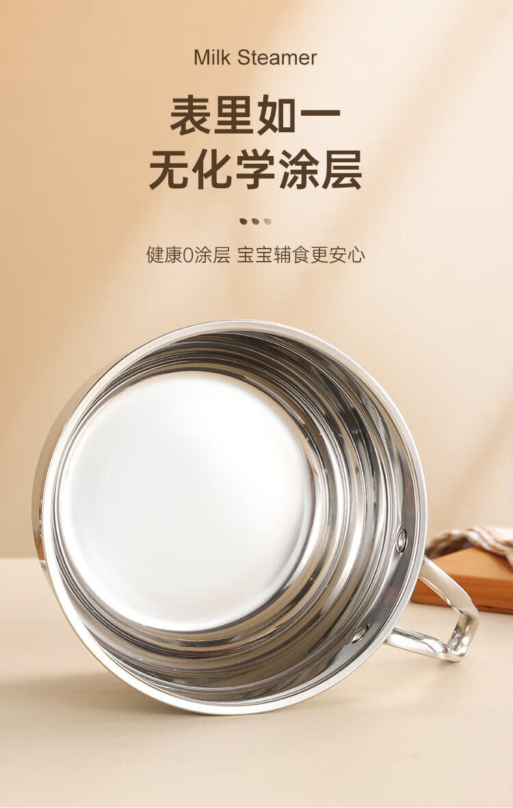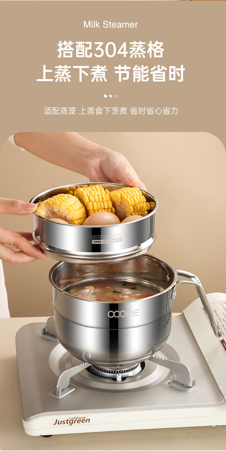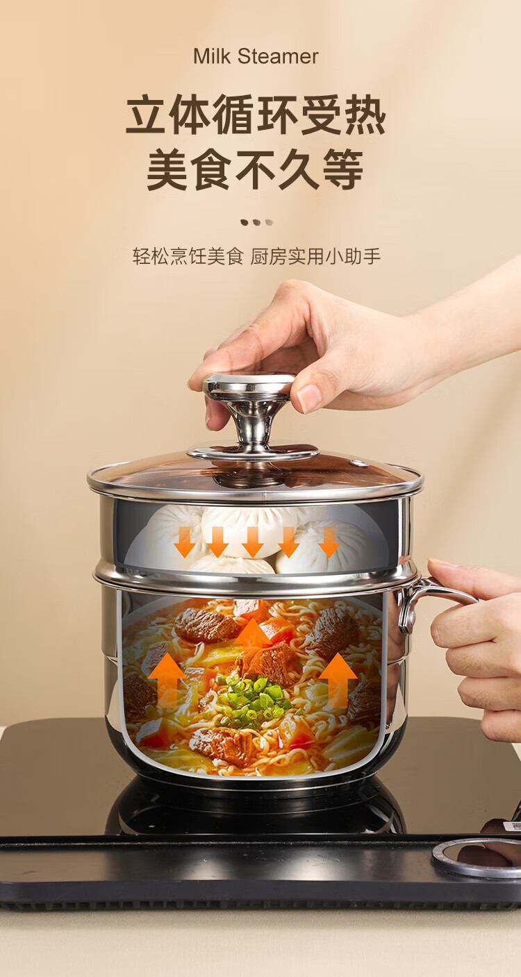 (巨邦佑)BJ+物芯质造Smart 304钢U型柄奶蒸锅带蒸格16cm 一锅多用炉具通用
