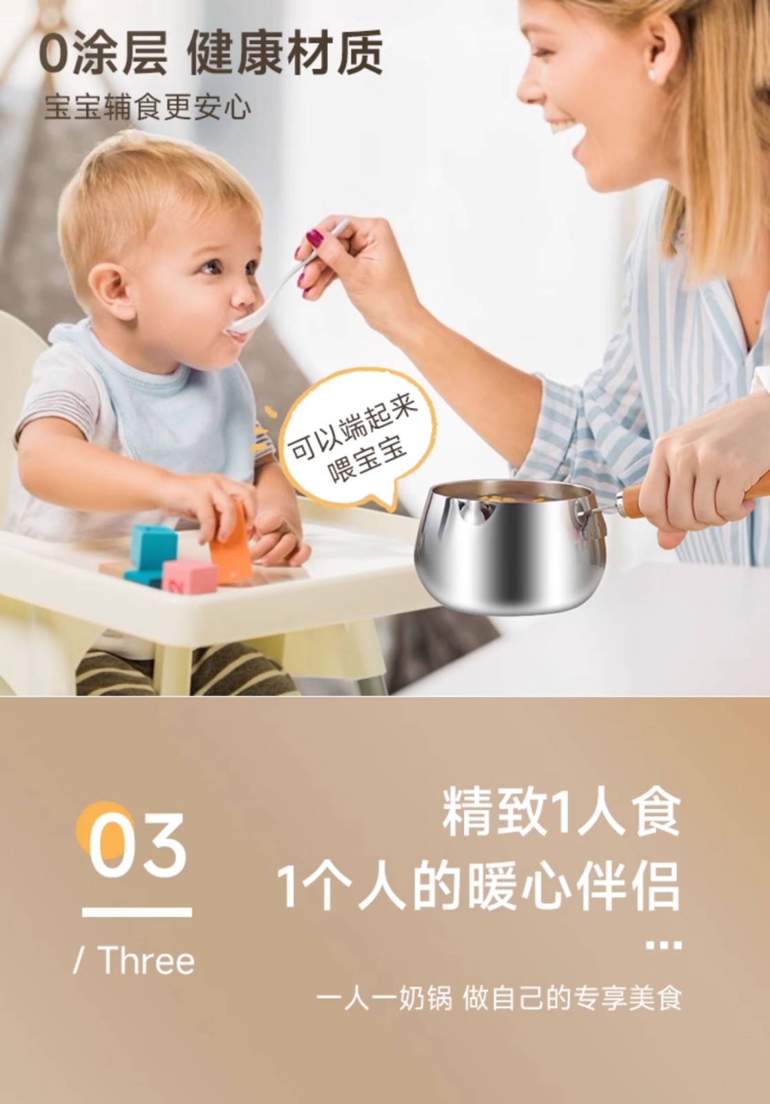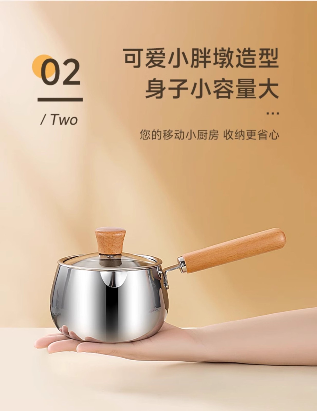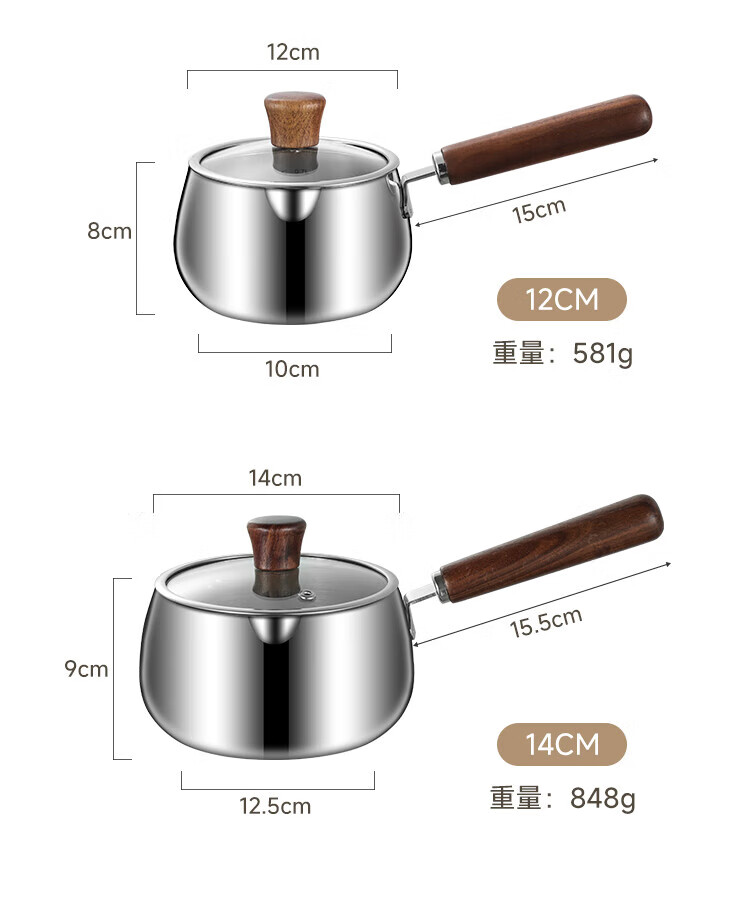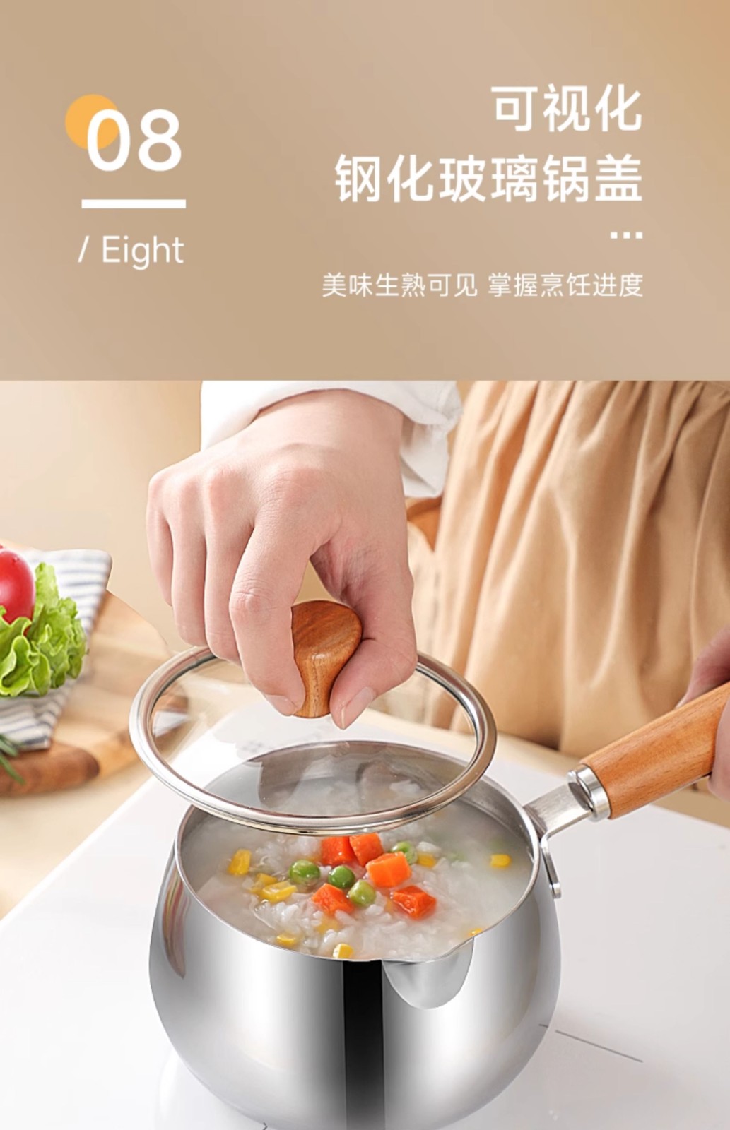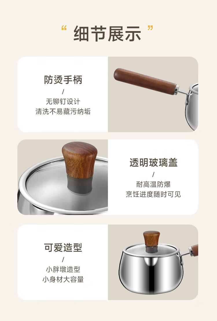 商品名称:(巨邦佑)BJ+物芯质造Smart316不锈钢小奶锅 榉木柄胡桃木炳辅食锅汤锅泡面蒸锅燃气电磁炉