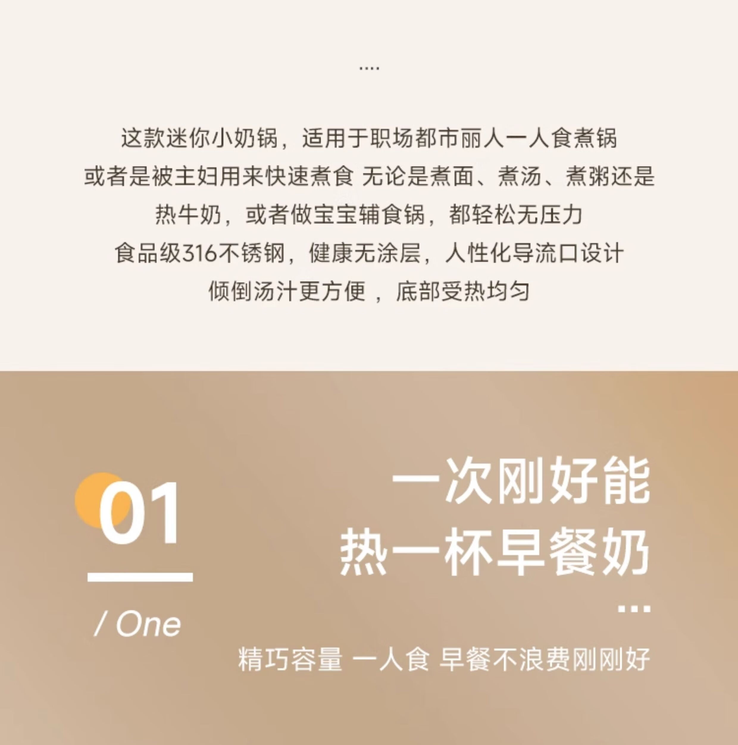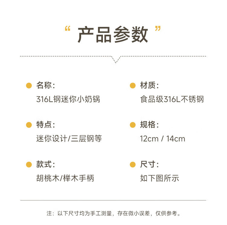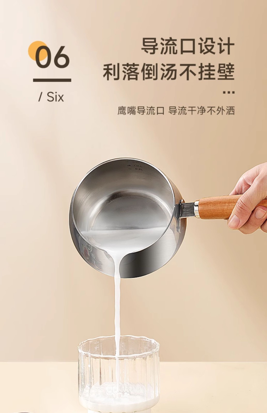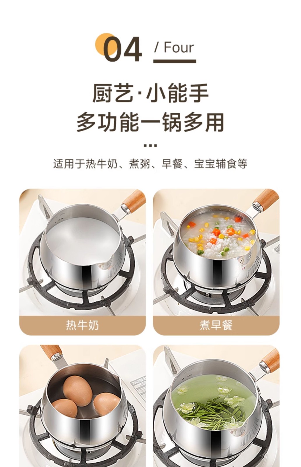 商品名称:(巨邦佑)BJ+物芯质造Smart316不锈钢小奶锅 榉木柄胡桃木炳辅食锅汤锅泡面蒸锅燃气电磁炉
