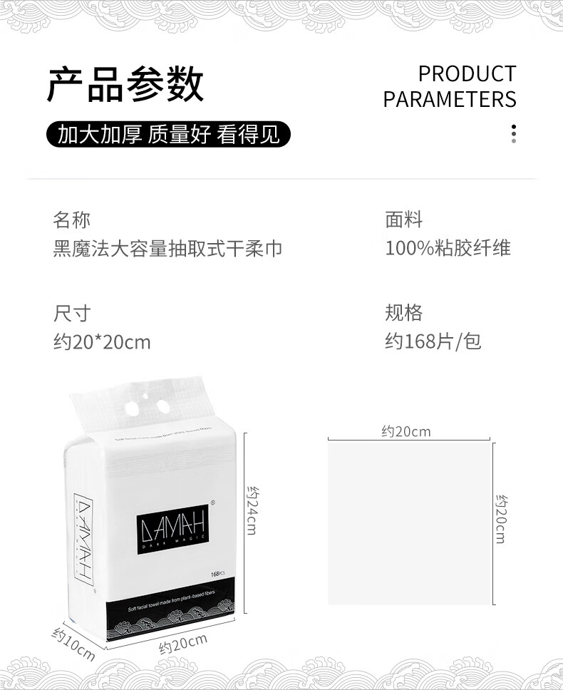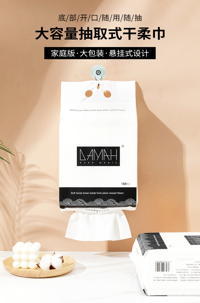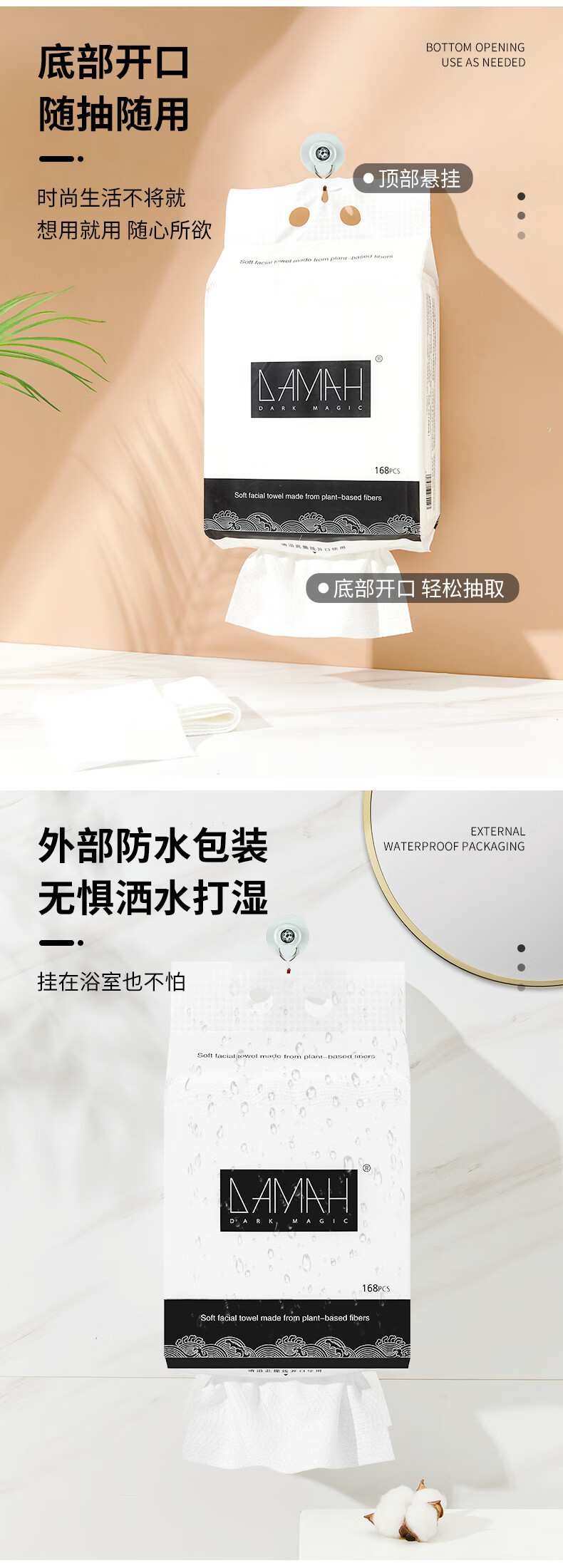 商品名称:(巨邦佑)R+黑魔法悬挂抽取式一次性洗脸巾168片*1包 大容量加厚擦脸洁面巾