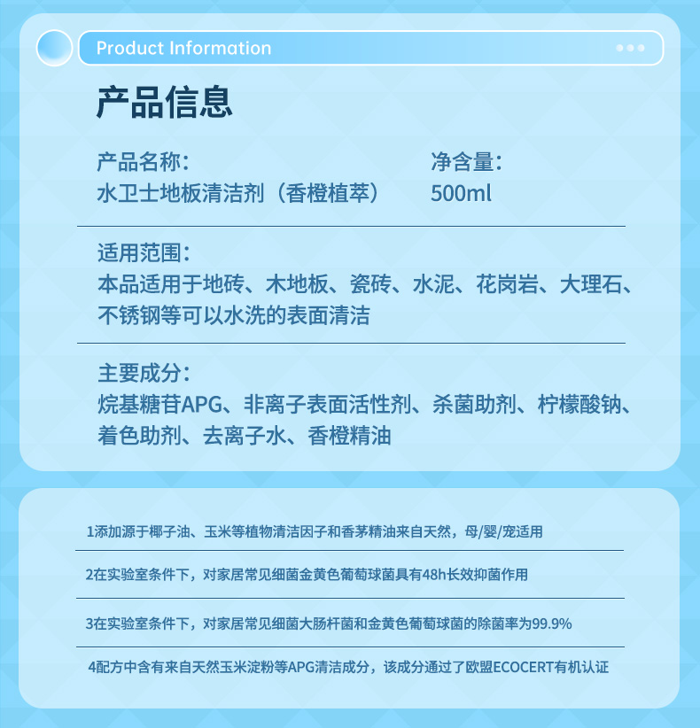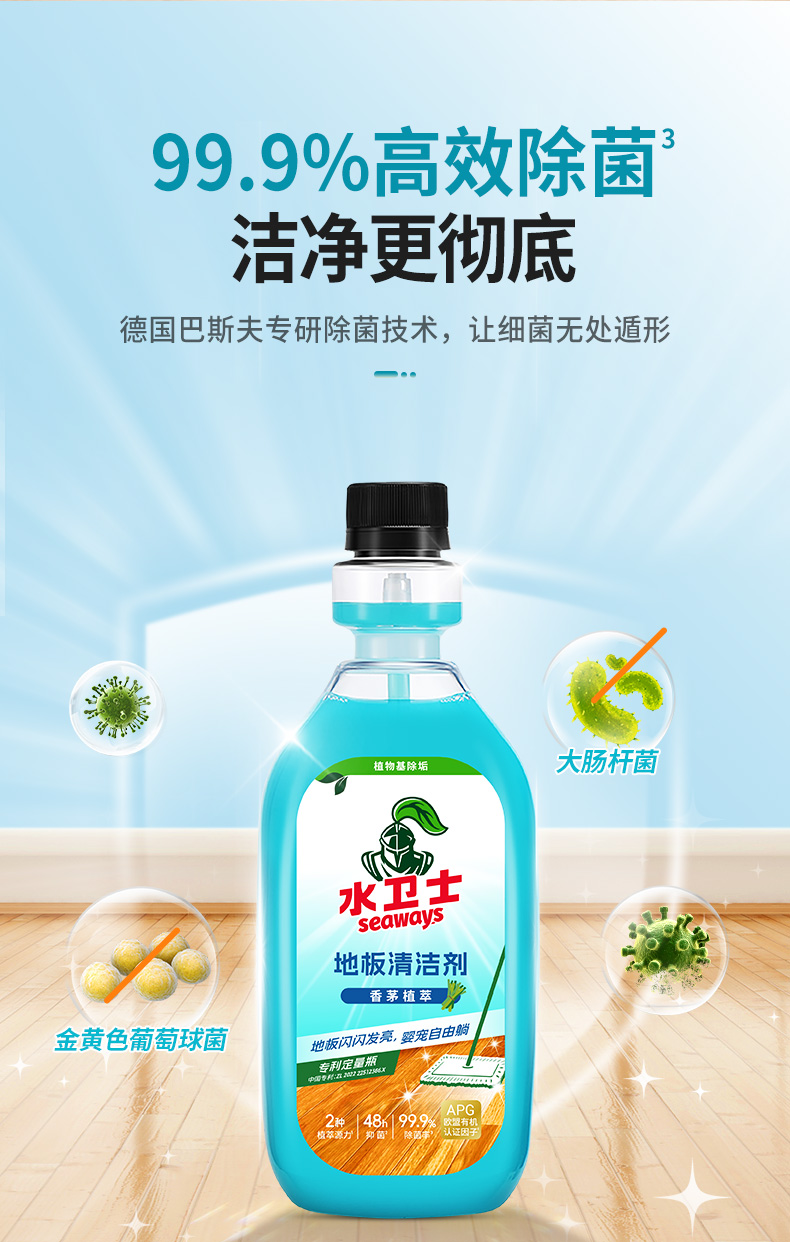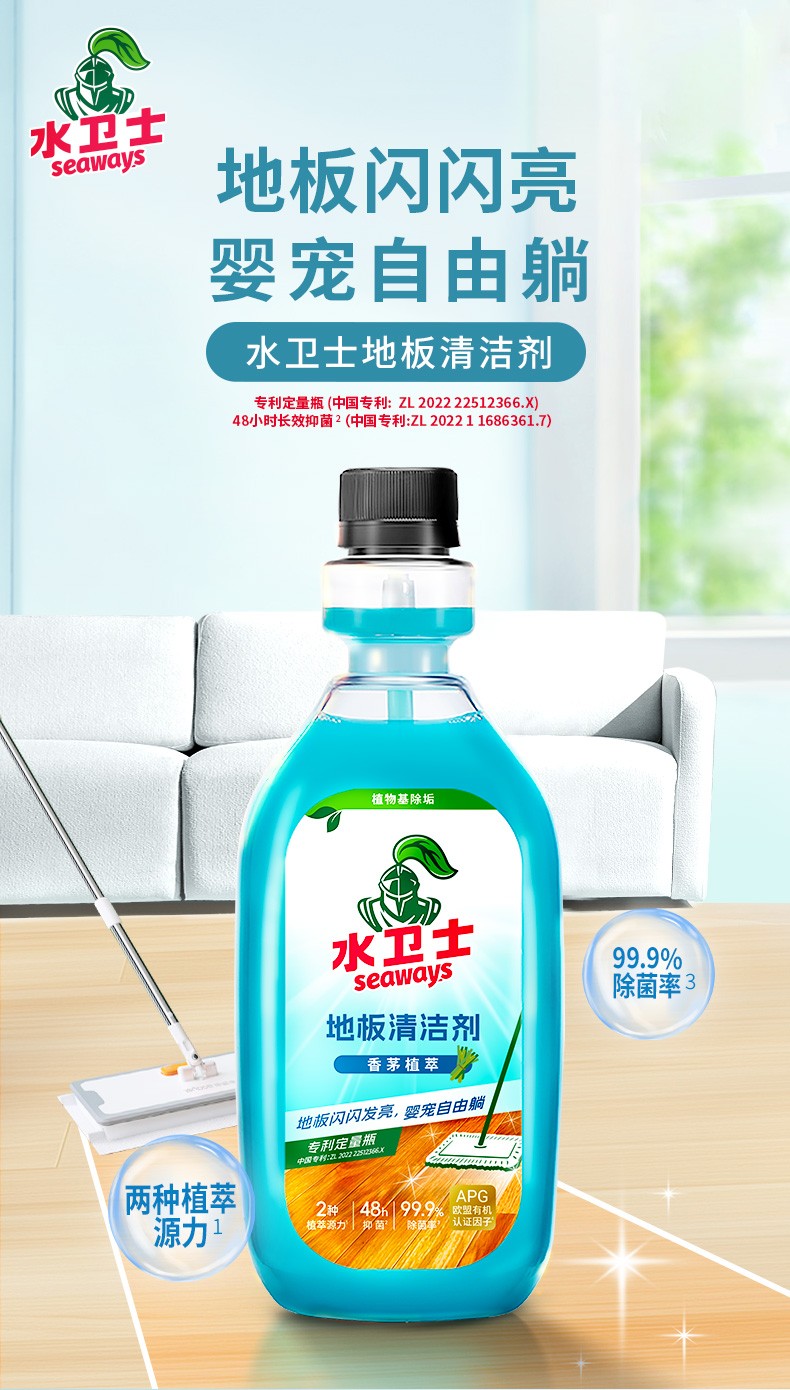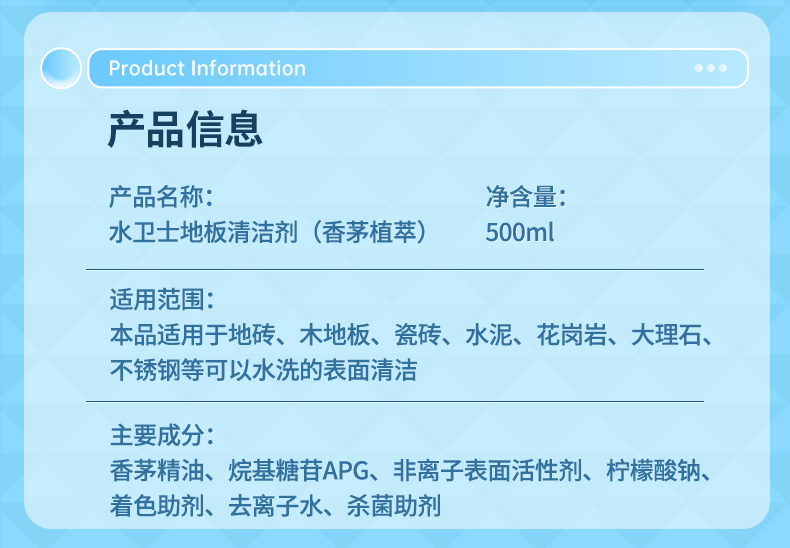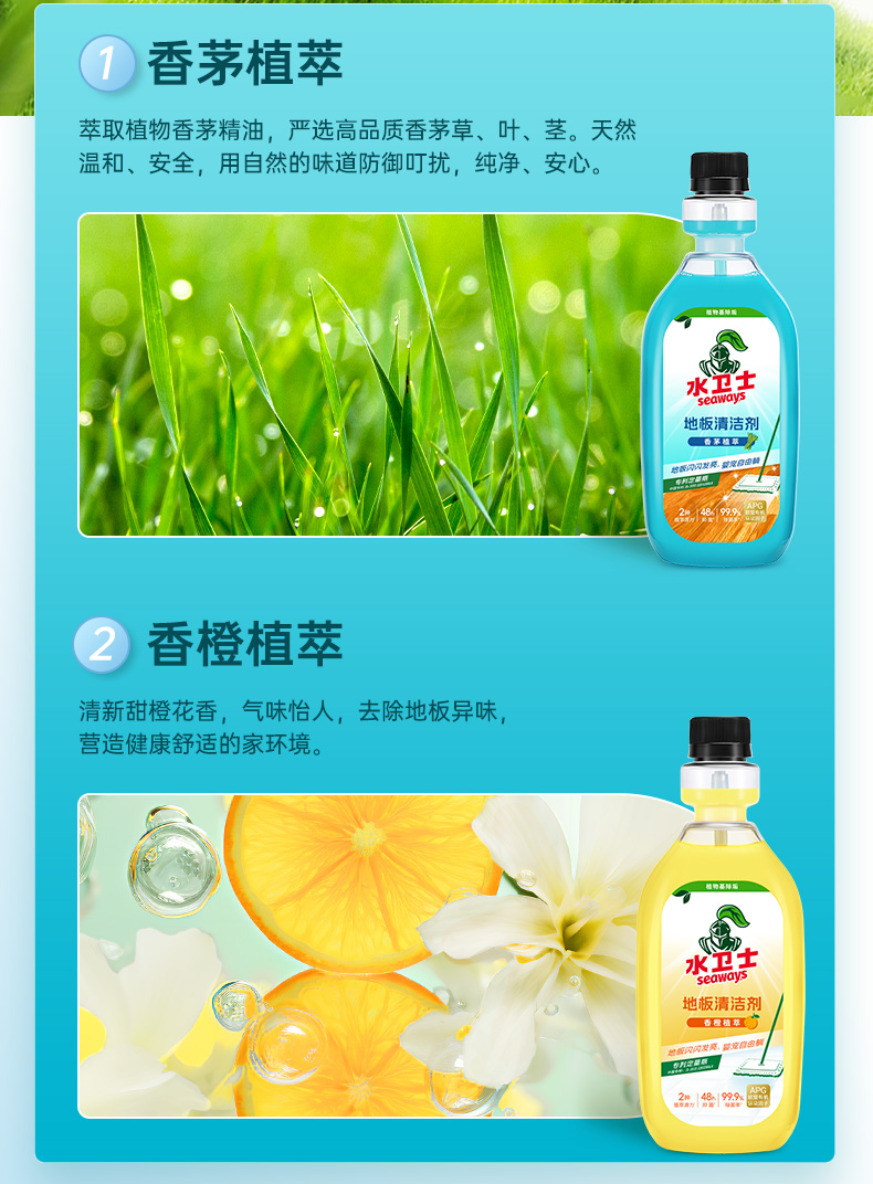 商品名称:(巨邦佑)R+水卫士地板清洁剂500m*2瓶 婴宠家庭适用 扫地机器人专用 瓷砖拖地去污除菌去污垢 地板清洁剂l【香茅】