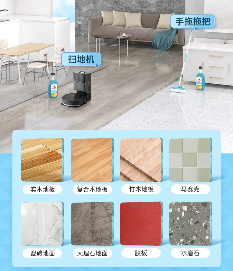 (巨邦佑)R+水卫士地板清洁剂500m*2瓶 婴宠家庭适用 扫地机器人专用 瓷砖拖地去污除菌去污垢 地板清洁剂l【香茅】