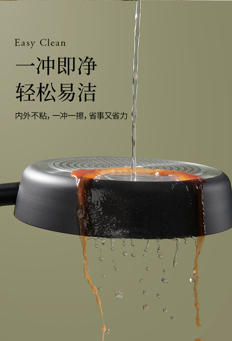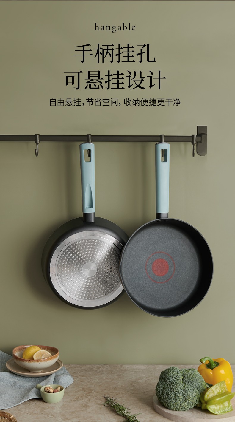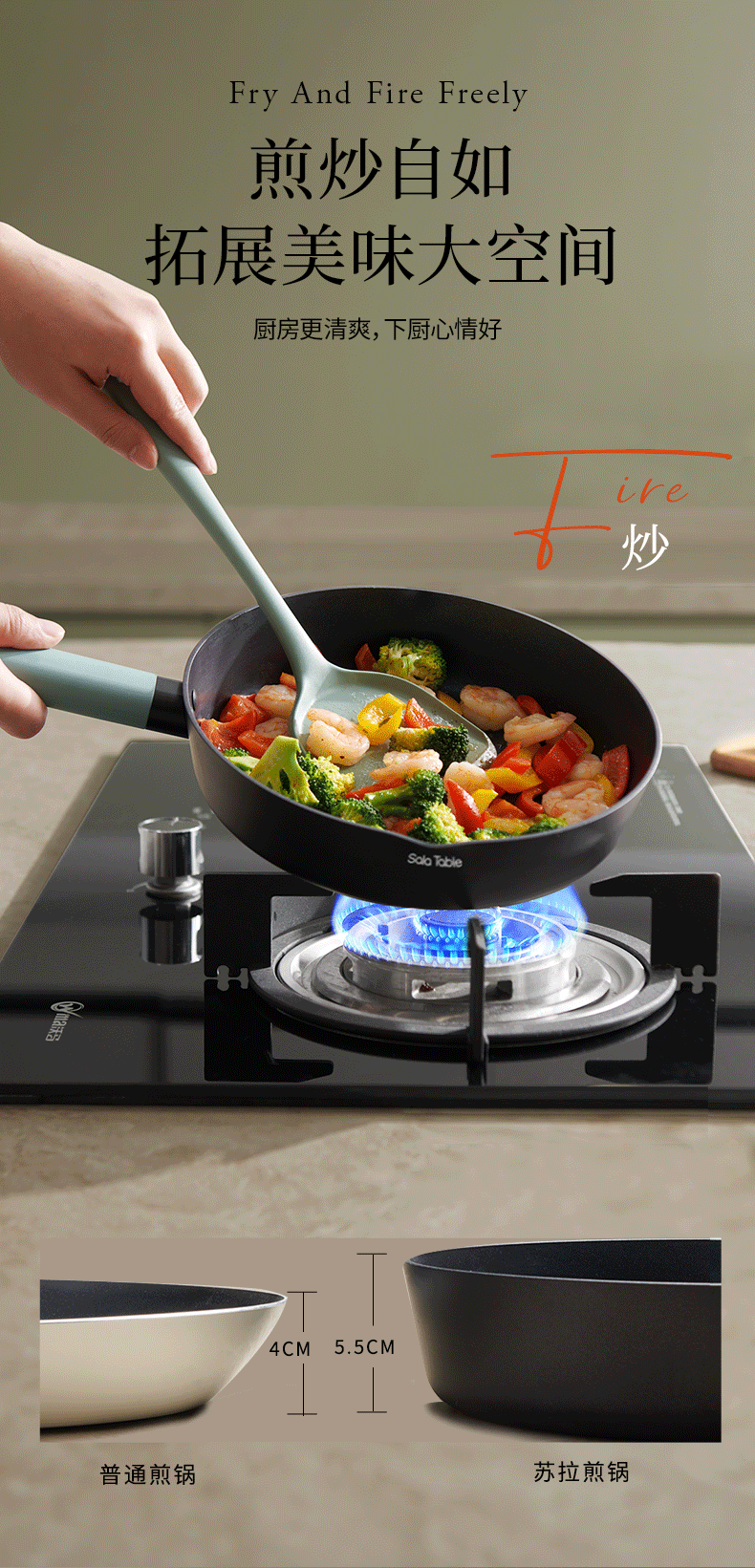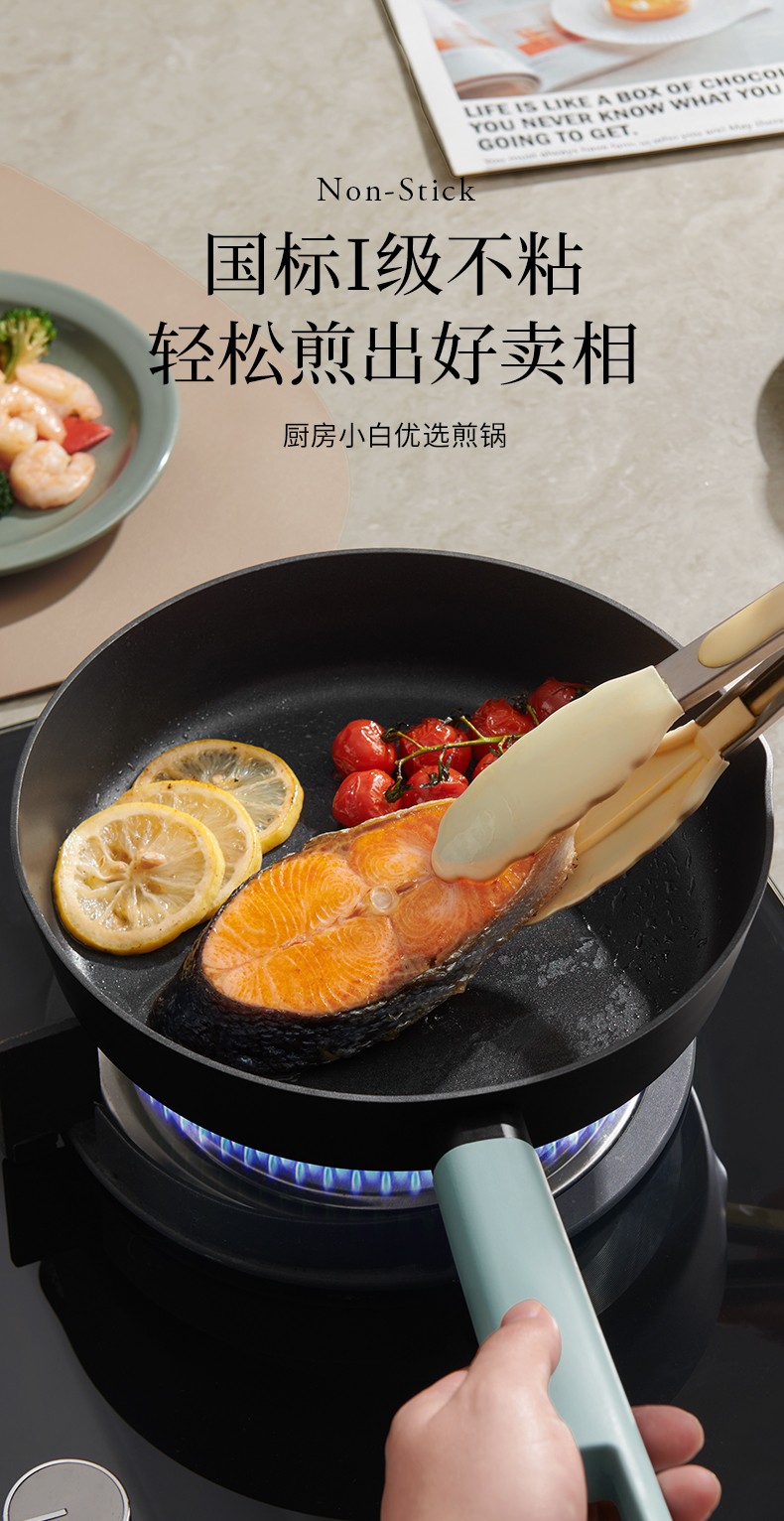 (世星阳光)+WY苏拉食光 北欧钛晶煎锅 24cm SL-JL24G1 控温点有图案 需要加热升温 控温点变全红 油温刚刚好