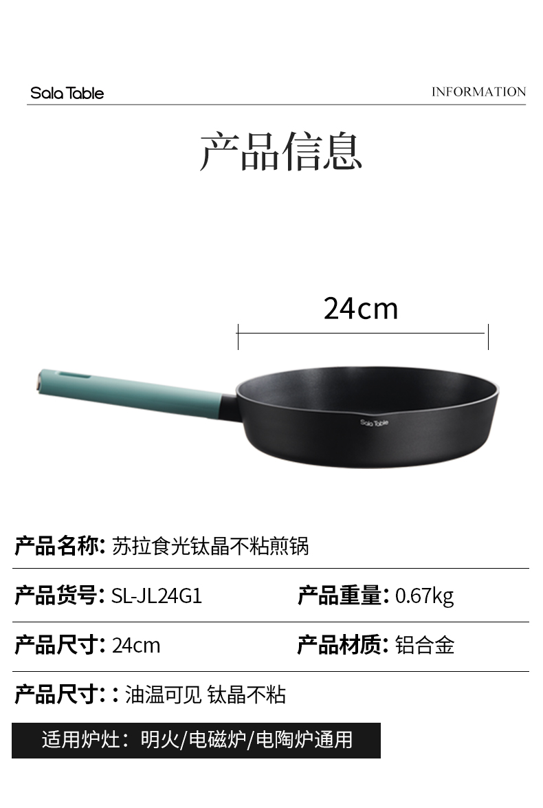商品名称:(世星阳光)+WY苏拉食光 北欧钛晶煎锅 24cm SL-JL24G1 控温点有图案 需要加热升温 控温点变全红 油温刚刚好