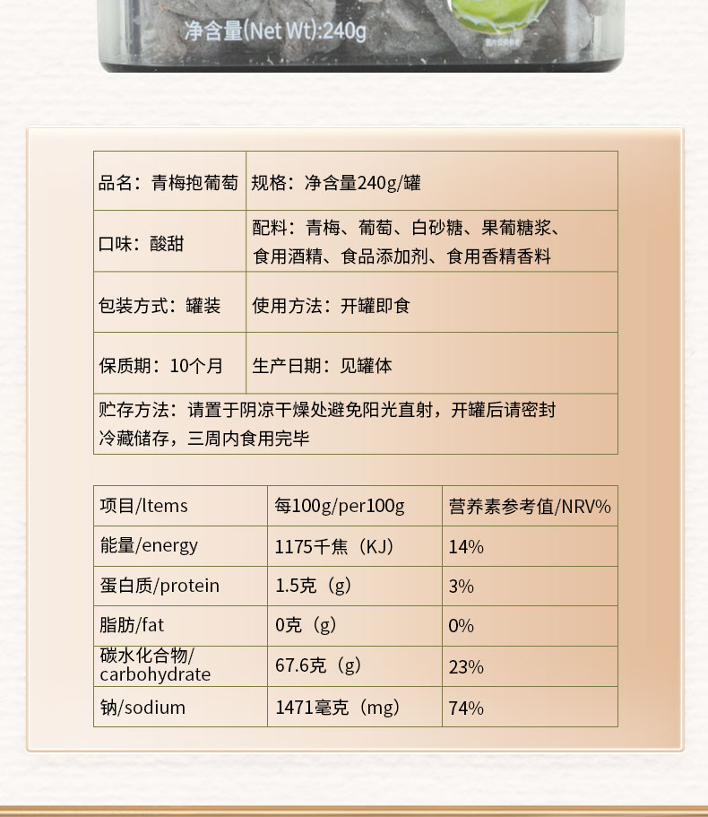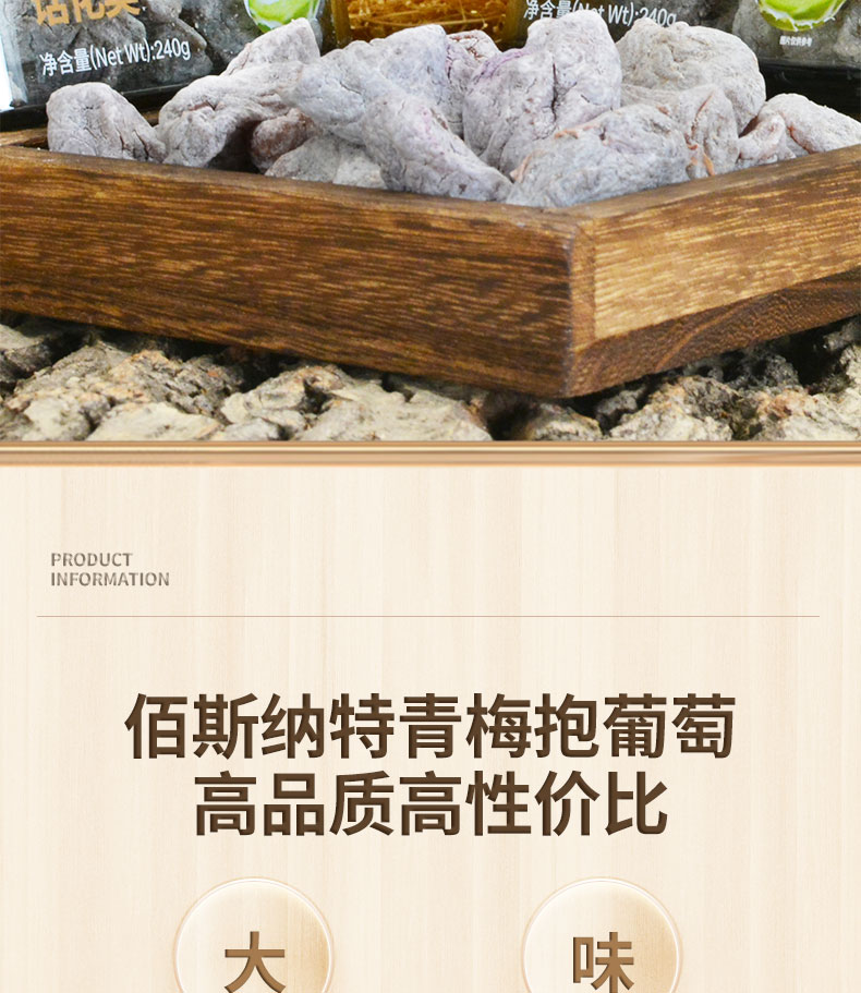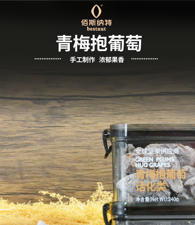商品名称:(世星阳光)+佰斯特纳 青梅抱葡萄240g 蜜饯果干 网红零食 小吃水果 干果脯
