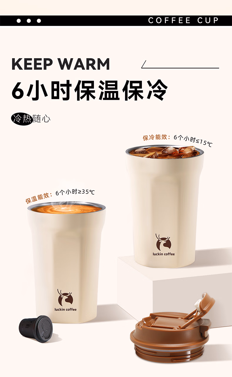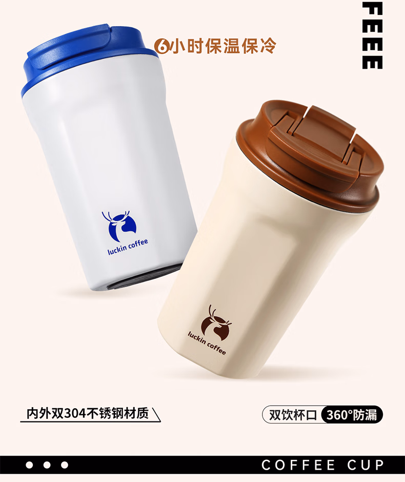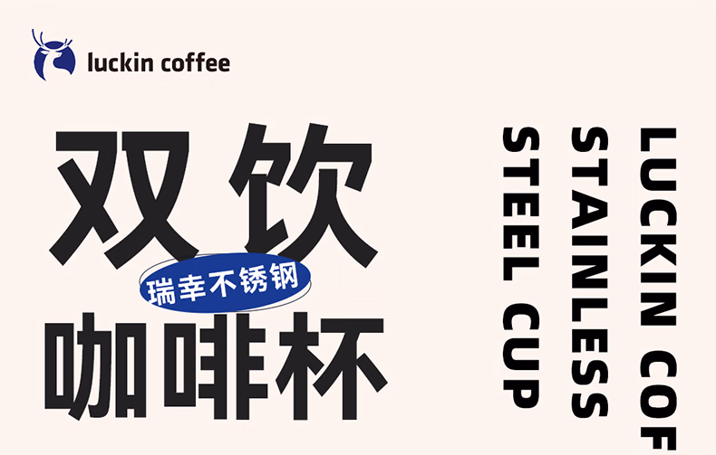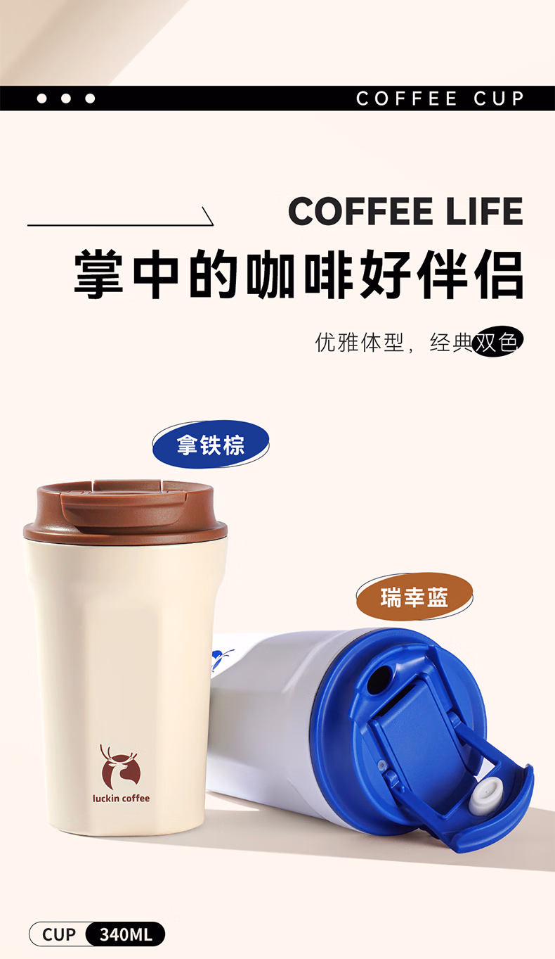 (超运·禾贸)【周边-不锈钢杯】瑞幸不锈钢双饮咖啡杯-瑞幸蓝-340ml 304不锈钢双饮咖啡杯保温保冷咖啡杯