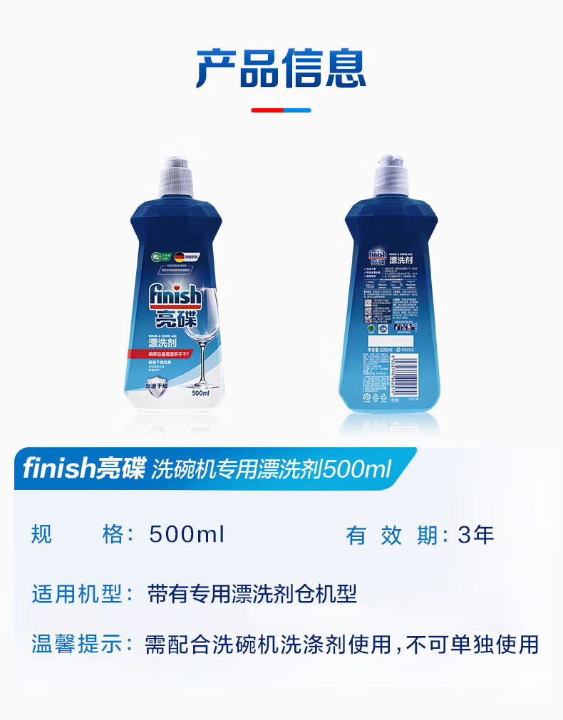 商品名称:(超运·禾贸)亮碟洗碗机专用漂洗剂500ml 光亮剂洗碗机专用洗涤剂加速烘干玻璃除水斑