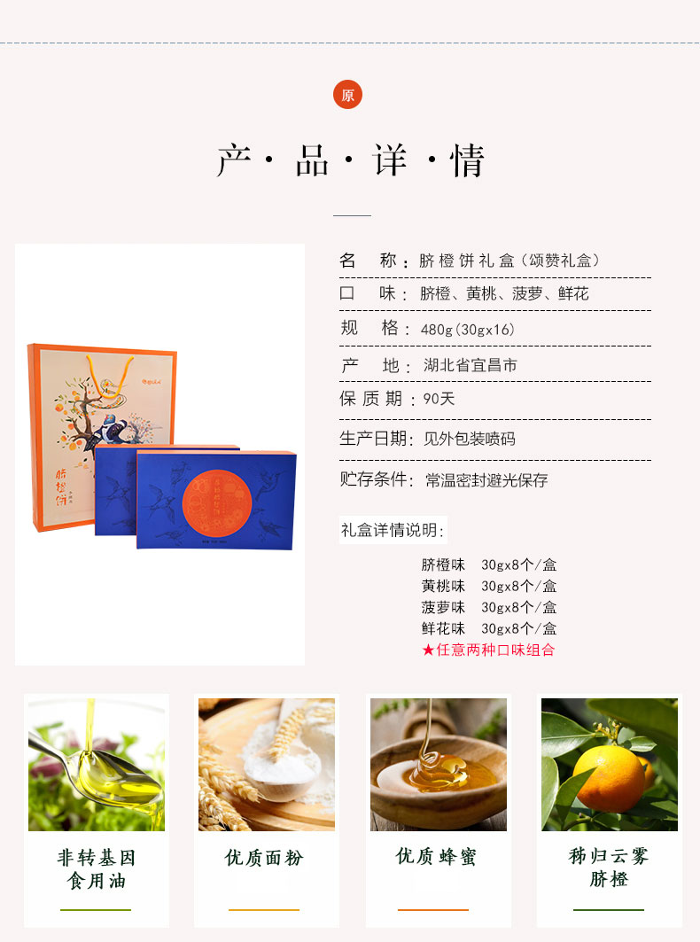 商品名称:(中科惠橙)屈姑颂赞礼盒480g 脐橙饼点心糕点