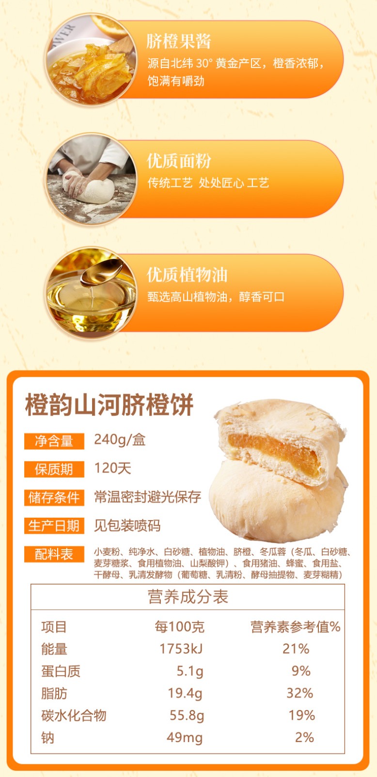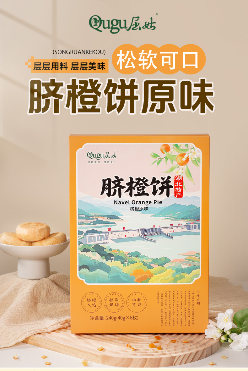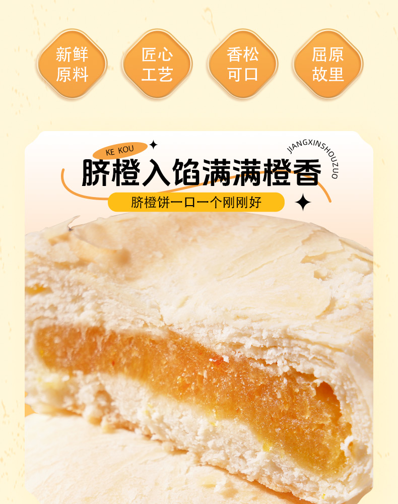 商品名称:(中科惠橙)屈姑橙韵山河脐橙饼 脐橙味240g 下午茶糕点点心