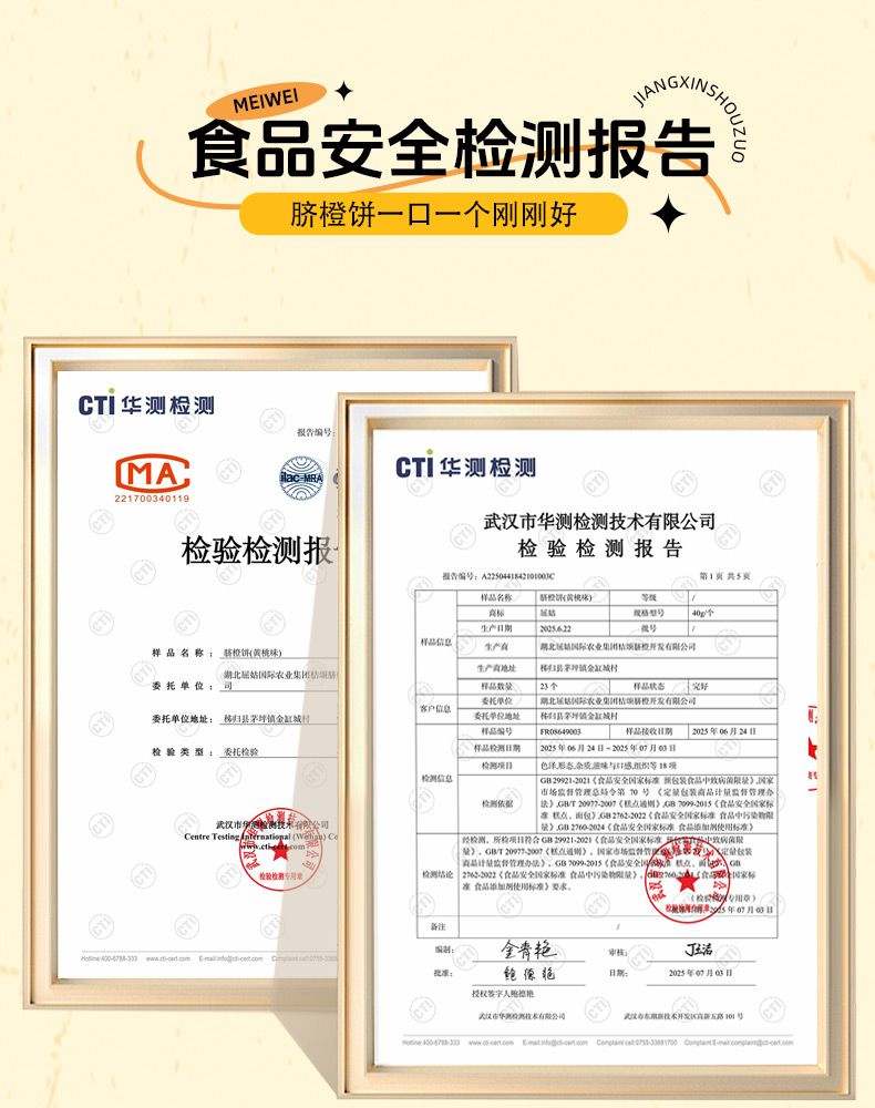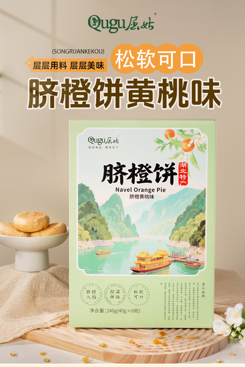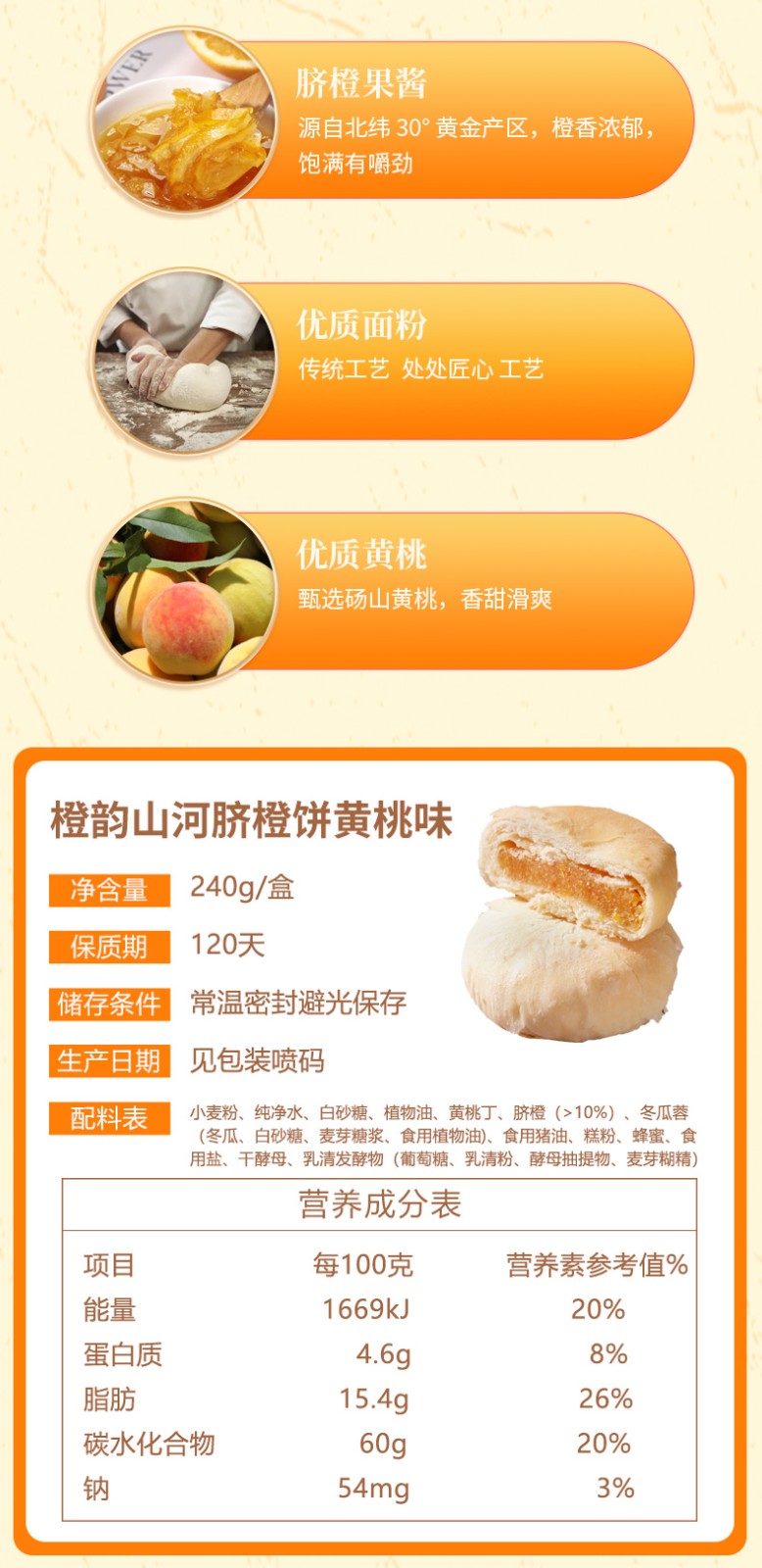 商品名称:(中科惠橙)屈姑橙韵山河脐橙饼 脐橙黄桃味240g 糕点点心